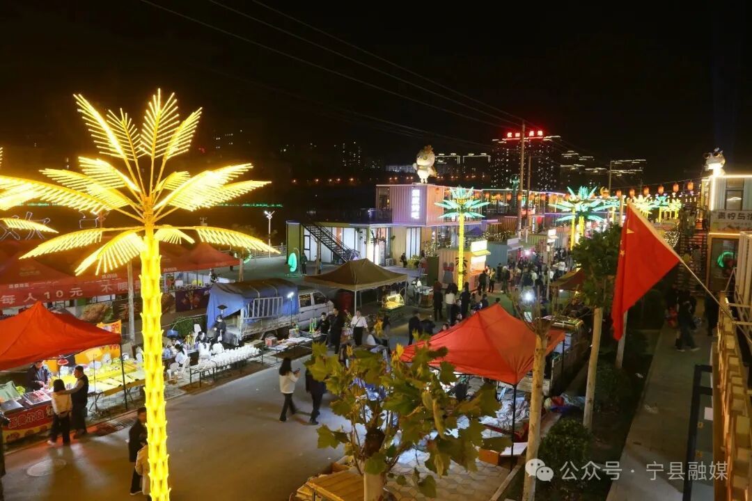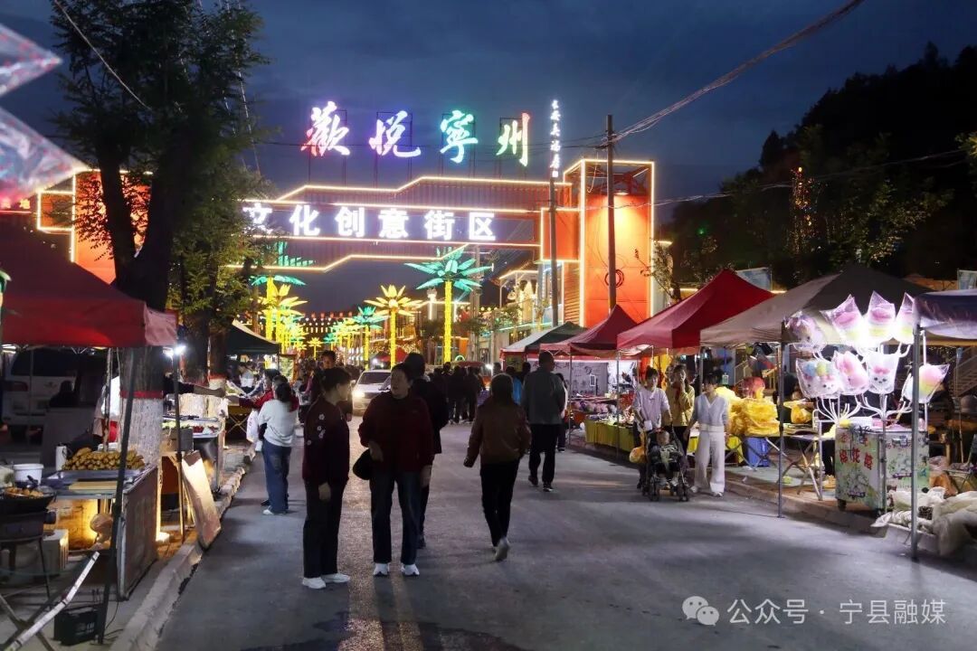 與此同時,街區(qū)另一側的夜市也迎來了它最熱鬧的時刻。各色美食攤位前香氣四溢,地方特色小吃、精致甜點、創(chuàng)意飲品琳瑯滿目,令人食指大動。游客們穿梭其間,或品嘗美味,或挑選心儀的手工藝品,孩子們手持發(fā)光的玩具嬉笑追逐,勾勒出一幅充滿煙火氣的動人畫卷。傳統(tǒng)與潮流在此交匯,歷史與現代在此共鳴,充分展現了寧縣文旅融合發(fā)展的蓬勃生機與無限活力。