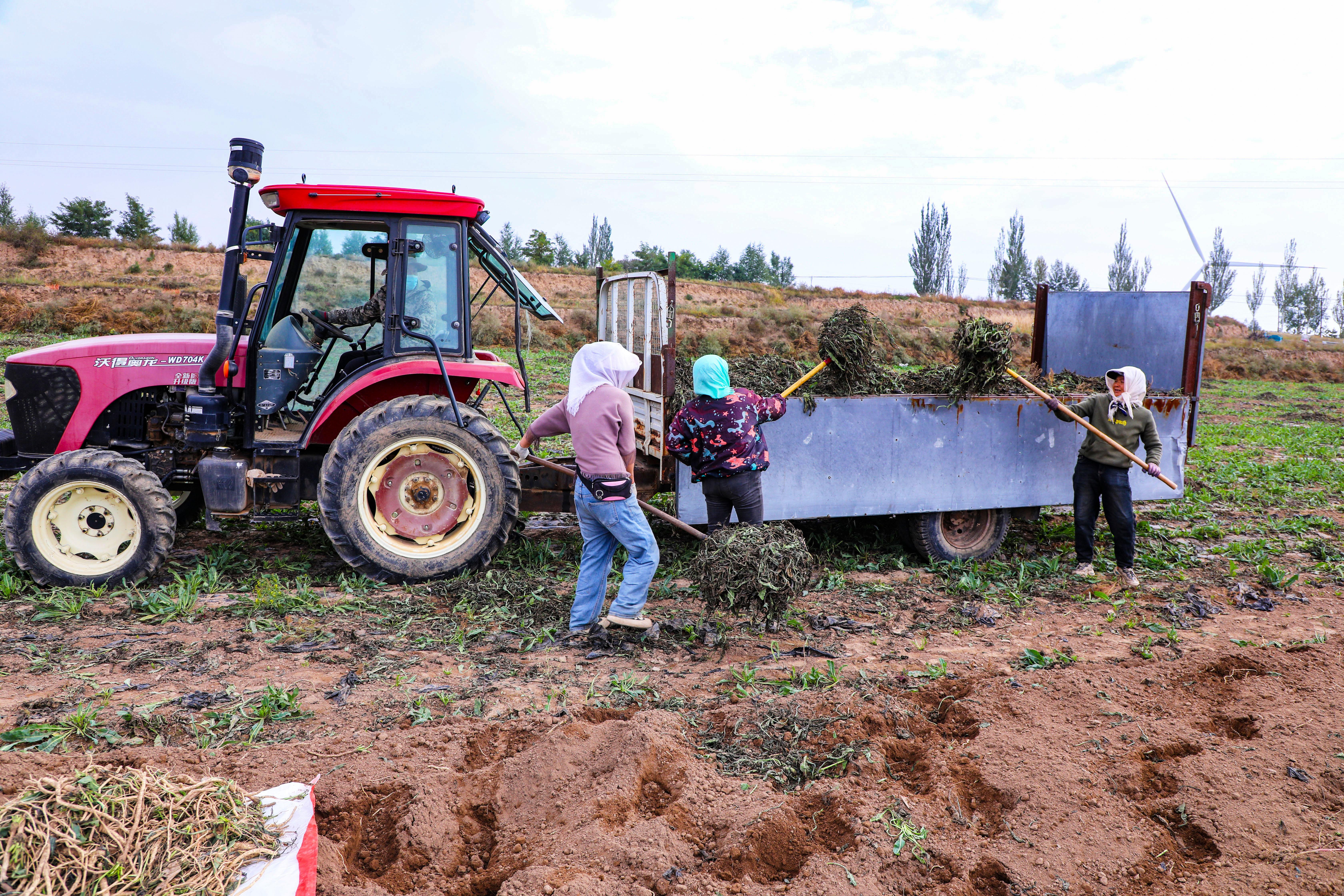 同樣忙碌的還有小南溝鄉(xiāng)。該鄉(xiāng)中藥材基地里,原先的翠綠已變成連片褐色,藥材全面進入采收期。陳掌村馬路塬組村民余有明,每天開著自家采挖機穿梭田間:“這機子是3年前買的,一天能挖十幾畝地,每畝收費200元。尤其是每年后半年,活兒根本干不完。”