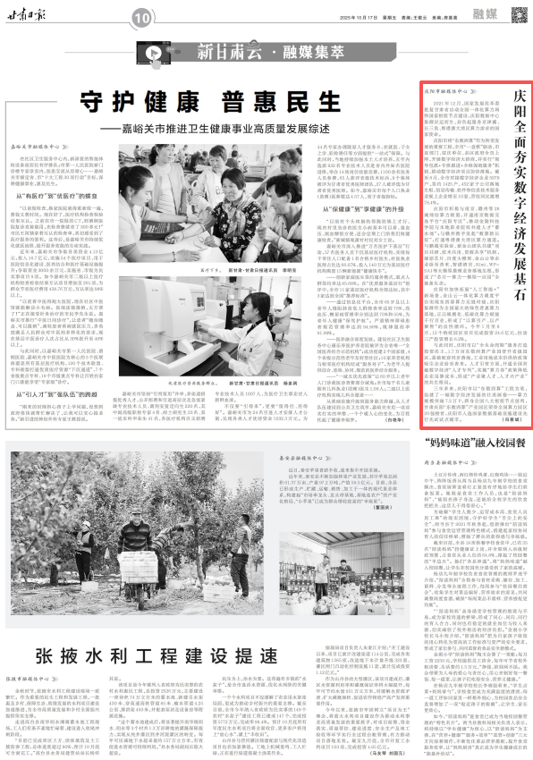 三年多來,慶陽市以“東數(shù)西算”工程為筆,繪就了一幅數(shù)字經(jīng)濟(jì)發(fā)展的壯美畫卷——算力規(guī)模突破7.2萬P,躋身全國八大樞紐節(jié)點(diǎn)前列,甘肅慶陽“東數(shù)西算”產(chǎn)業(yè)園區(qū)榮登全國算力園區(qū)20強(qiáng)榜首,慶陽市入選國家數(shù)據(jù)基礎(chǔ)設(shè)施建設(shè)先行先試試點(diǎn)城市。(馮喜斌)