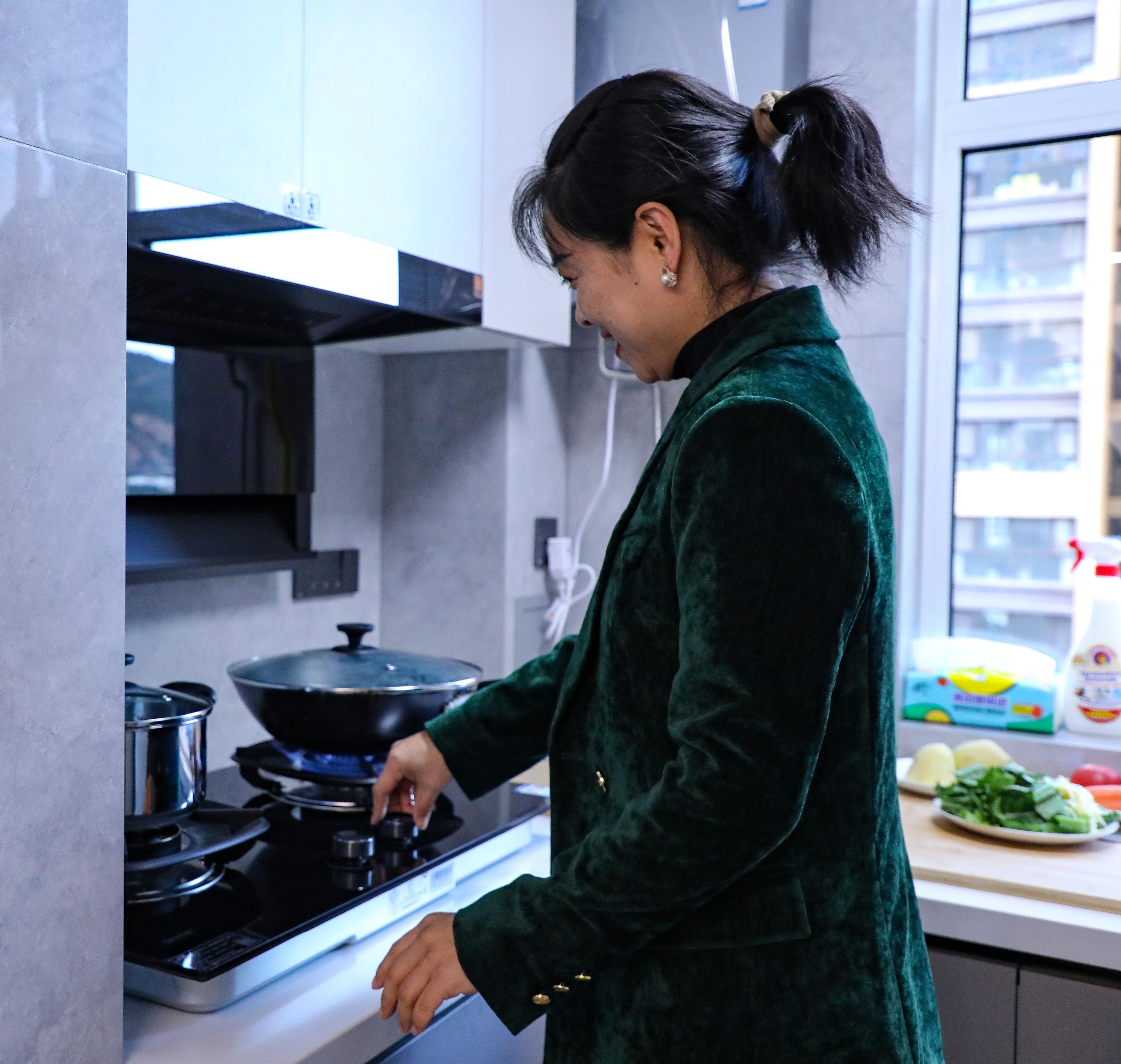 張龍家的廚房里,抽油煙機輕聲嗡鳴,一簇藍色的火焰穩(wěn)定地包裹著鍋底,妻子鄭謾娜正熟練地翻炒著青菜。灶臺旁,是已經(jīng)備好的幾樣小菜。空氣中彌漫的飯菜香,與家人的說笑聲交融,勾勒出一幅尋常卻溫馨的生活圖景。
