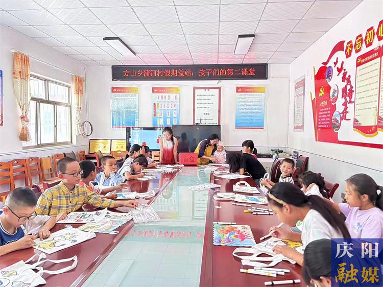 方山鄉(xiāng)蒲河村假期益站給孩子們講授美術。