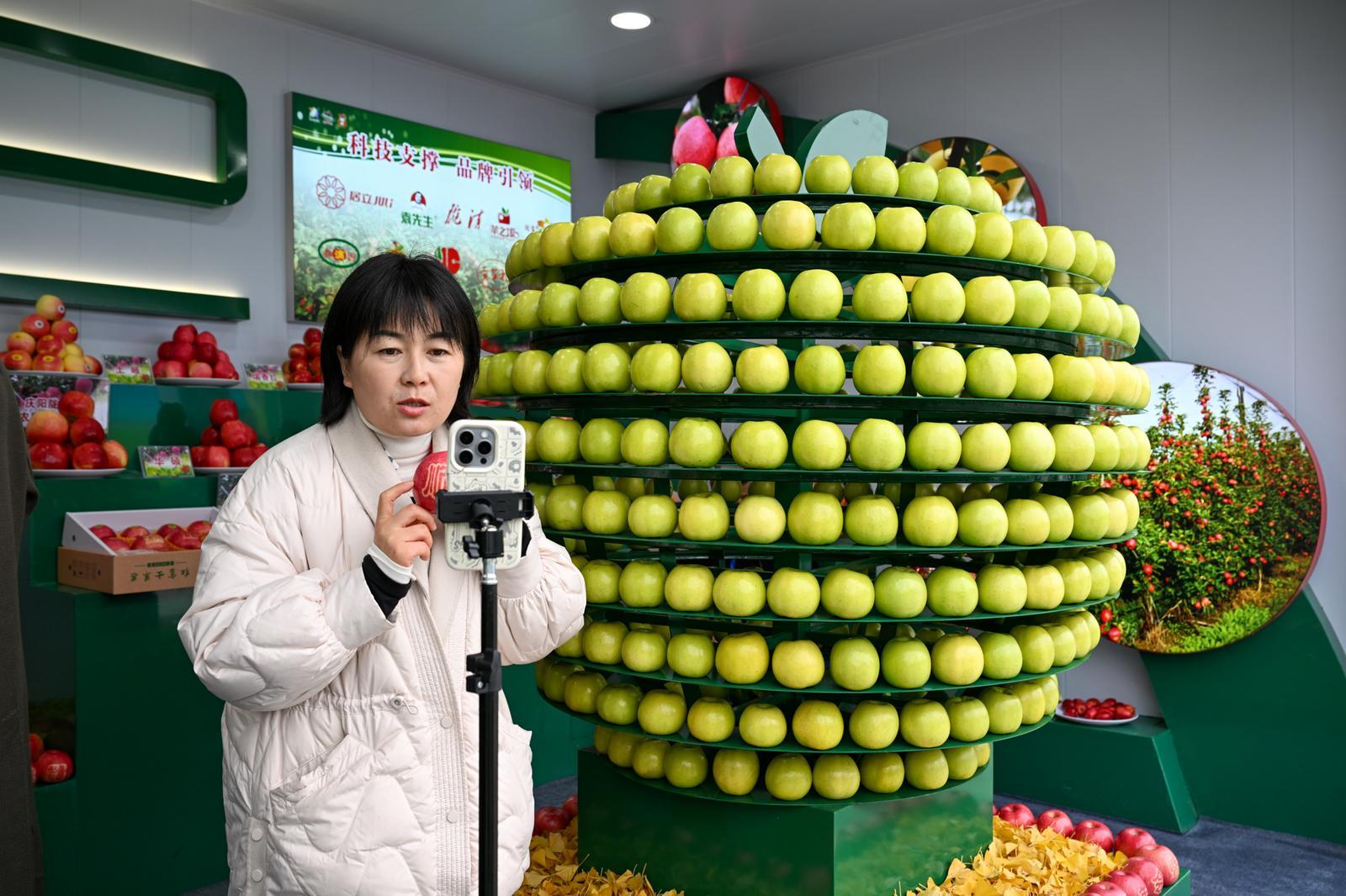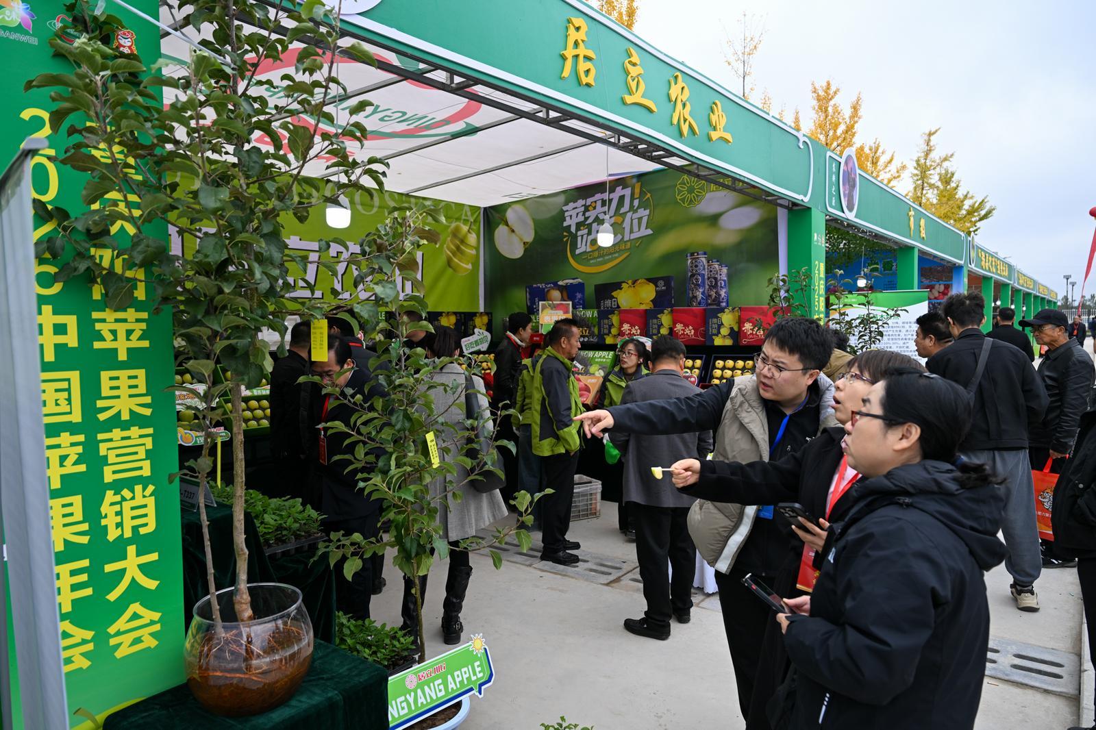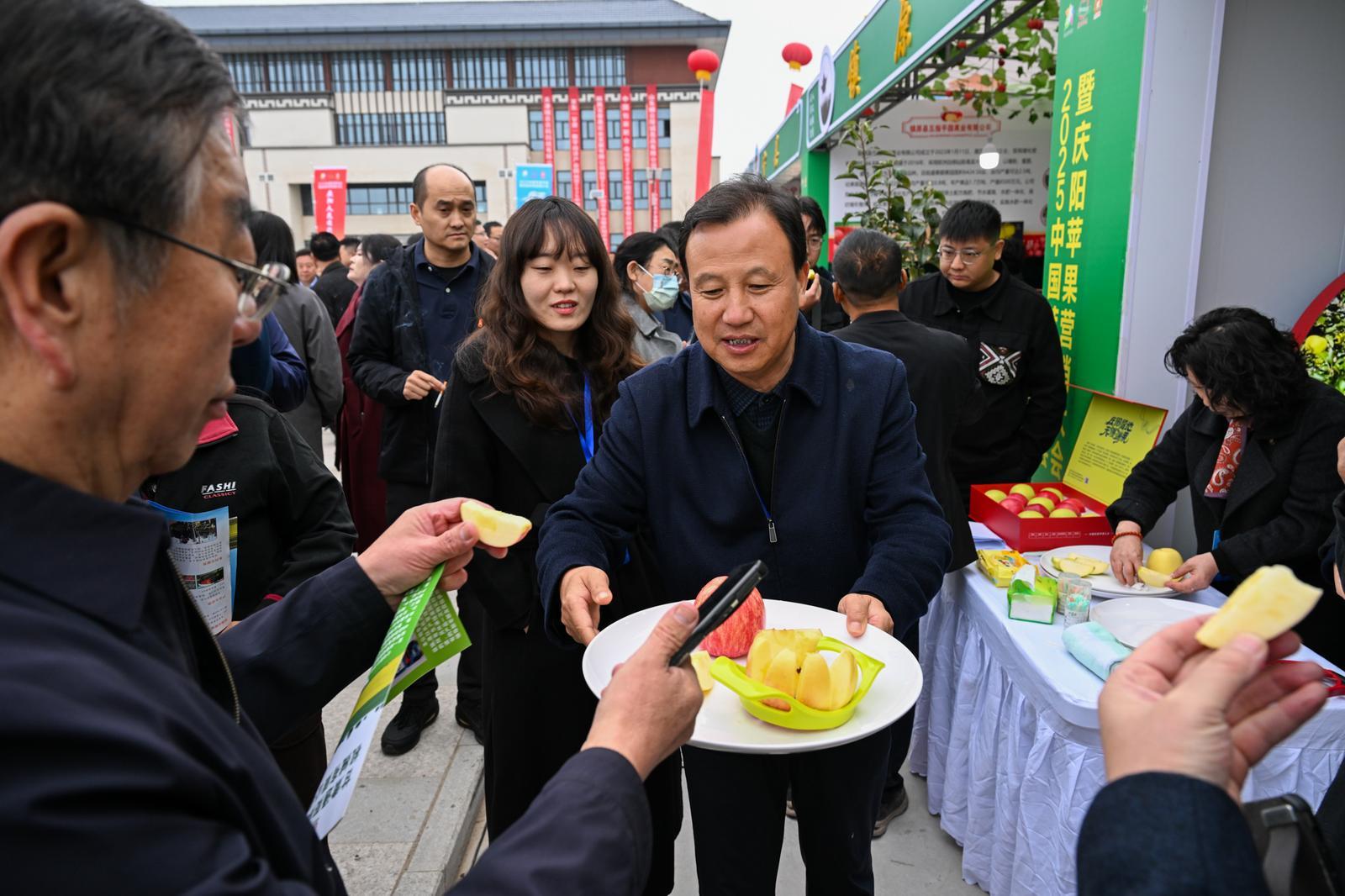 慶陽蘋果展示展銷區(qū)人頭攢動。