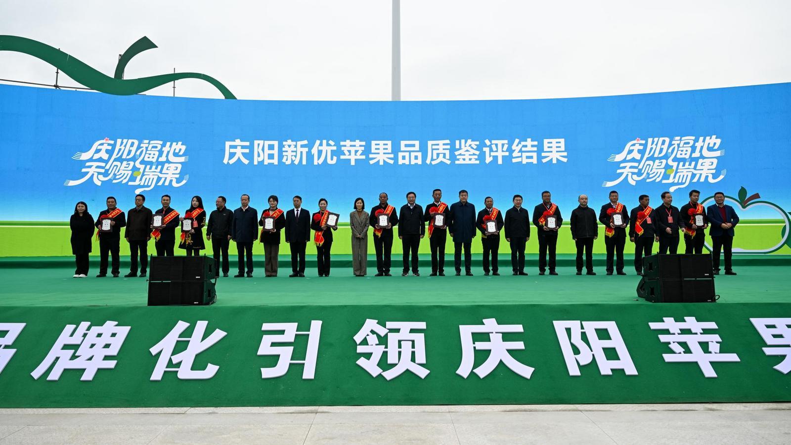 獲得慶陽新優(yōu)蘋果品質鑒評金獎、銀獎、銅獎的企業(yè)、合作社和種植大戶上臺領獎。