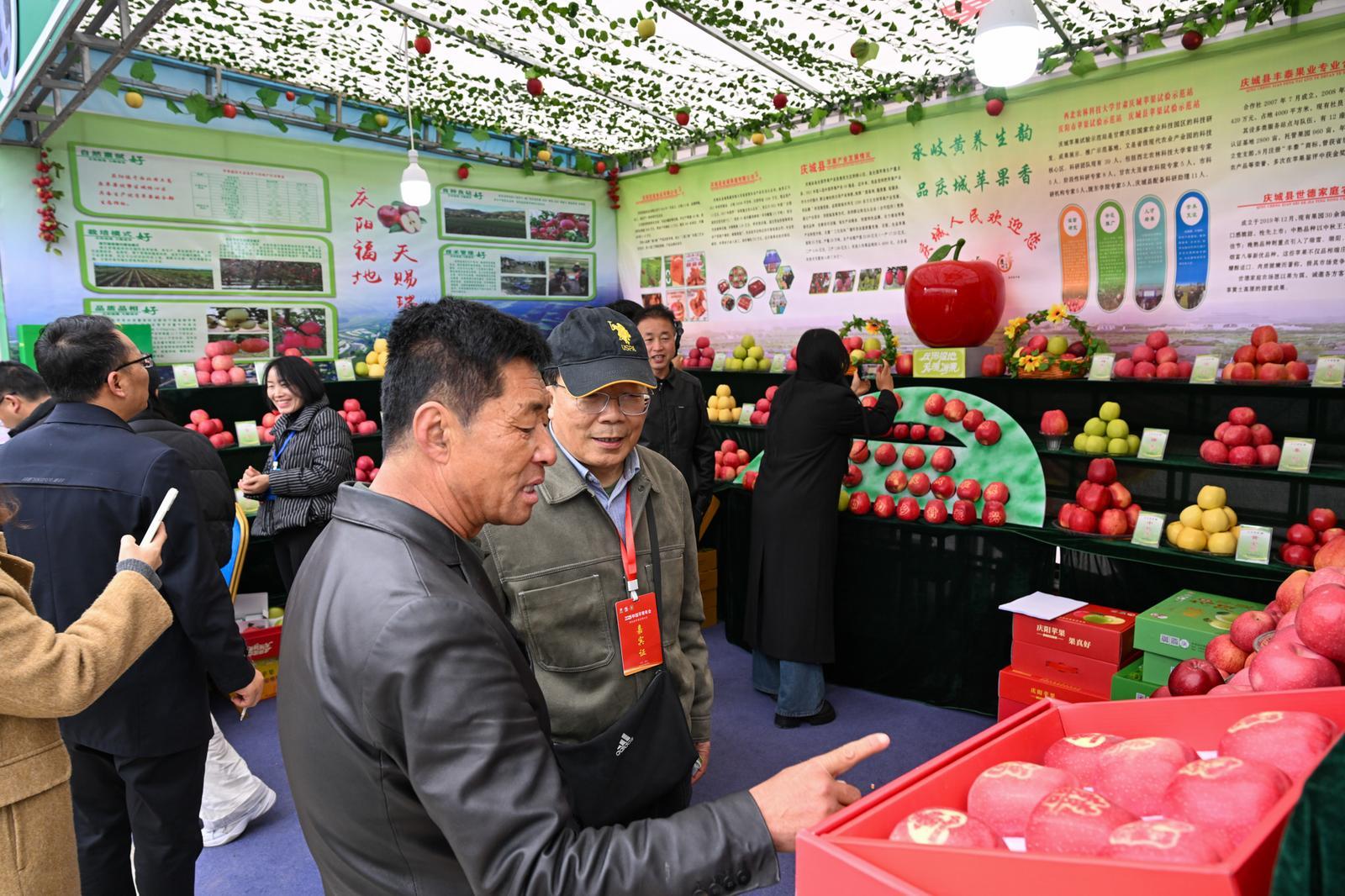 慶陽蘋果展示展銷區(qū)吸引眾多市民參觀選購。