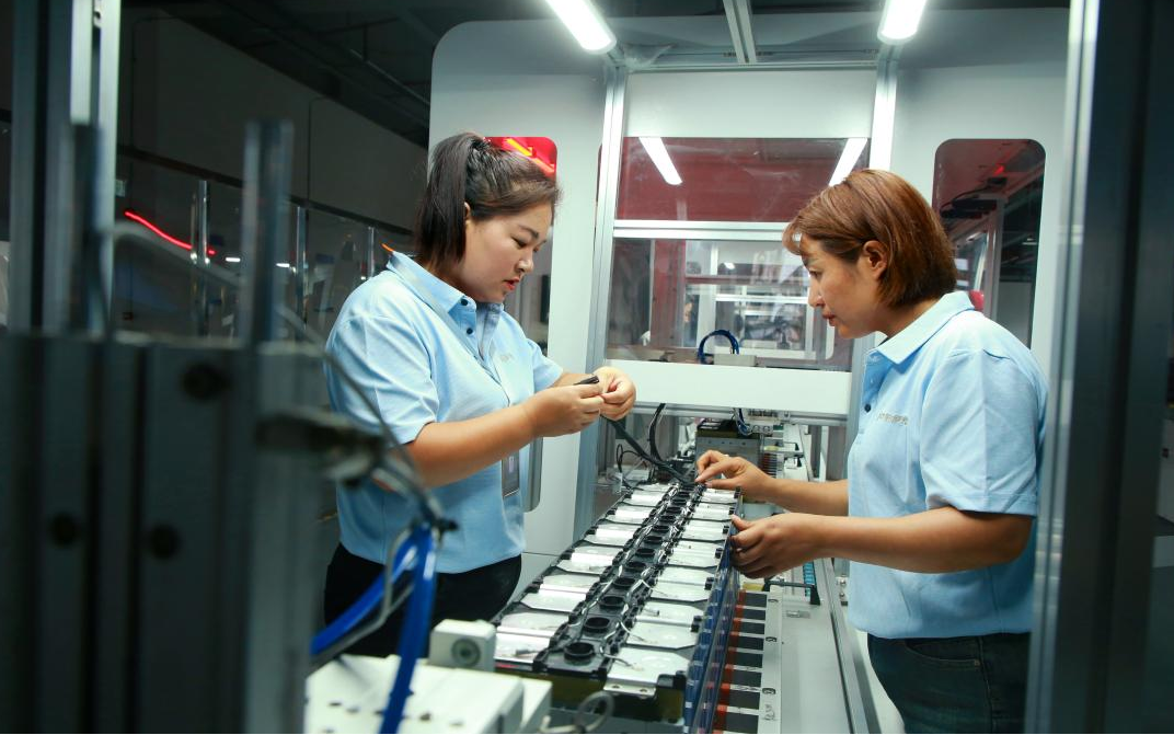 在鞏固煤電產(chǎn)業(yè)優(yōu)勢(shì)的同時(shí),正寧縣積極拓展新能源賽道,推動(dòng)“煤電化新”產(chǎn)業(yè)深度融合。中鈉儲(chǔ)能的生產(chǎn)車間內(nèi),機(jī)械臂精準(zhǔn)地抓取、組裝儲(chǔ)能電池,傳送帶不停運(yùn)轉(zhuǎn),顯示屏上實(shí)時(shí)跳動(dòng)著生產(chǎn)數(shù)據(jù)——每小時(shí)可生產(chǎn)儲(chǔ)能電池80余組。3億瓦時(shí)儲(chǔ)能生產(chǎn)線、1億瓦時(shí)小動(dòng)力電池生產(chǎn)線始終保持滿負(fù)荷運(yùn)轉(zhuǎn),二期2.2億瓦時(shí)石墨烯鈉離子電芯生產(chǎn)線也已順利投產(chǎn)。中鈉儲(chǔ)能新能源科技(甘肅)有限公司董事長(zhǎng)秦海斌表示,石墨烯鈉離子電池具有高安全性、耐低溫、高倍率等優(yōu)勢(shì),市場(chǎng)應(yīng)用前景廣闊,“待產(chǎn)能完全釋放后,預(yù)計(jì)年產(chǎn)值可達(dá)20億元以上,利稅超8000萬(wàn)元,能帶動(dòng)200余人就業(yè)?!?/p>