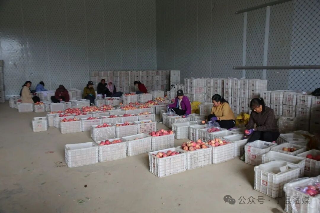 同樣,走進寧縣金橋果業(yè)農民專業(yè)合作社的包裝場地,香甜的果味撲鼻而來,只見十余名工人分工明確,有的忙著將蘋果按大小、色澤分揀分類,有的快速稱重打包,有的將封裝好的蘋果整齊碼放,等待裝車發(fā)售。