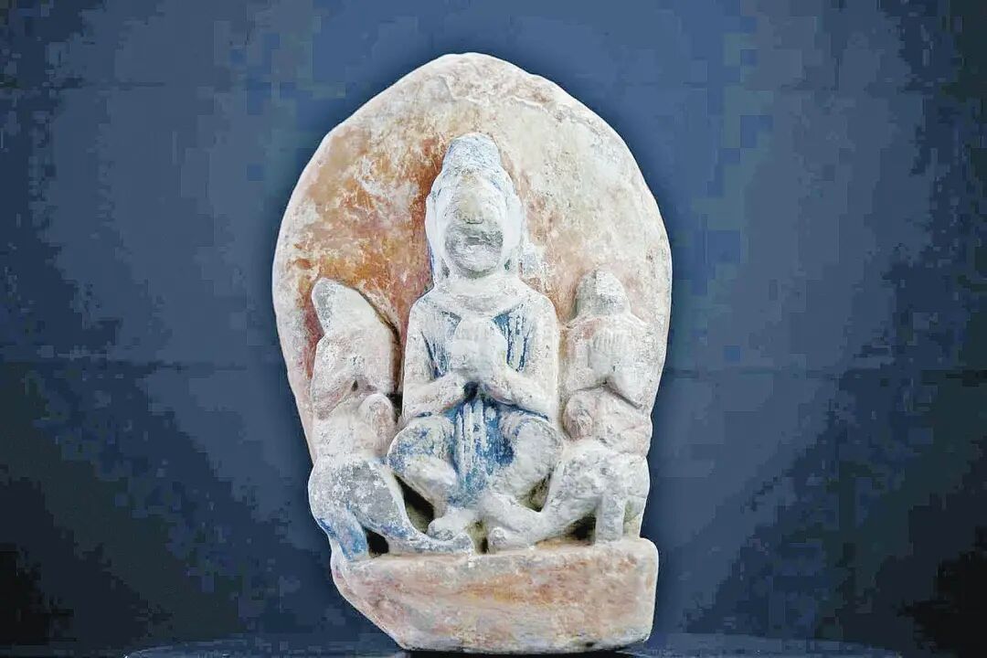在石刻展區(qū),蓮瓣形造像碑、彩繪交腳菩薩造像碑前總是圍著不少游客。這兩尊石雕造像曾遠(yuǎn)渡重洋,在日本、美國(guó)展出,成為向世界展示中國(guó)佛教石雕藝術(shù)的“文化使者”?!澳憧催@尊彩繪交腳菩薩造像碑,衣袂飄飄、神態(tài)安詳,彩繪雖歷經(jīng)千年仍有部分留存,可見(jiàn)當(dāng)時(shí)工藝之高超。”講解員手指造像碑,向游客介紹道。這類(lèi)造像碑融合了佛教文化與中原藝術(shù)風(fēng)格,是研究南北朝至隋唐時(shí)期宗教傳播、藝術(shù)發(fā)展的珍貴實(shí)物。