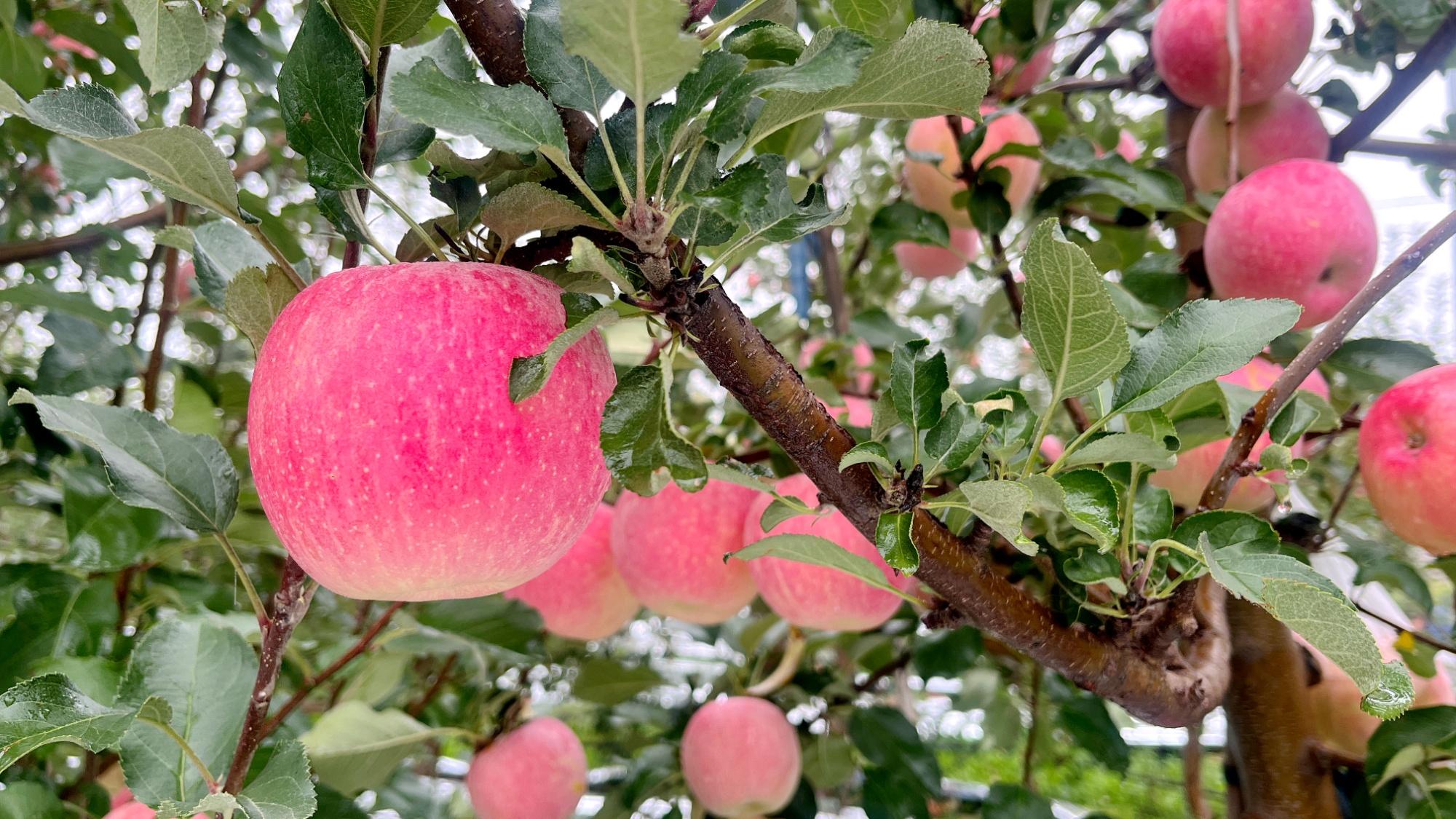 “瑞陽(yáng)和富士現(xiàn)已成熟,正在采收,10月下旬瑞雪也可采摘。今年蘋果畝產(chǎn)約4000斤,總產(chǎn)值達(dá)400多萬(wàn)元。用工高峰期,可為本村及周邊群眾提供80到100個(gè)就業(yè)崗位?!焙献魃缃?jīng)理何治禮說(shuō)。