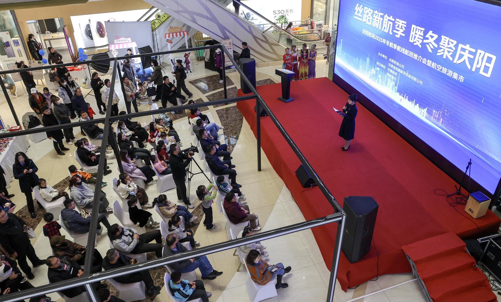 慶陽機(jī)場(chǎng)2025年冬航季航線航班宣傳推介暨航空旅游集市活動(dòng)現(xiàn)場(chǎng)。