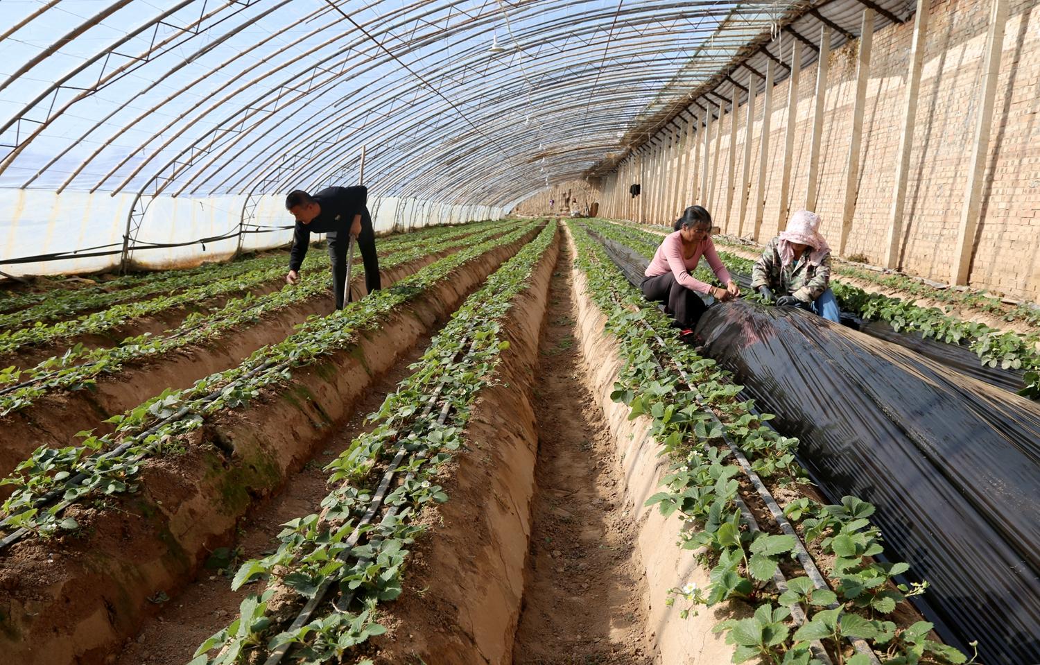 慶陽萬潤園種植養(yǎng)殖農民專業(yè)合作社種植戶管護草莓。盤小美 攝