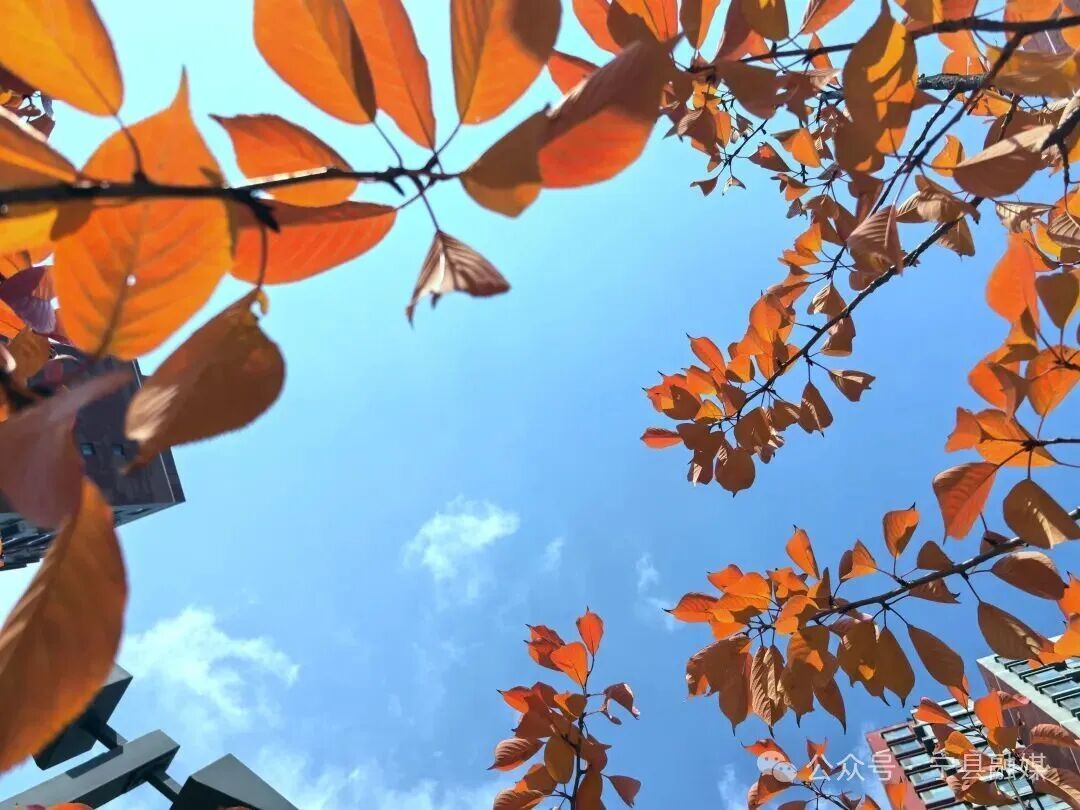 極目遠(yuǎn)眺,周圍的山巒像是被大自然這位丹青妙手精心暈染。紅的似火,那是楓葉在秋風(fēng)中熱烈地燃燒;黃的如金,銀杏葉在枝頭閃爍著耀眼的光芒;綠的依舊蔥蘢,松樹堅守著那份獨屬于它的生機(jī)。各種色彩相互交織,構(gòu)成了一幅絢麗多彩的畫卷,秋的韻味就這樣悄然無聲地將這座小城層層包裹,每一寸空氣都彌漫著秋的詩意。