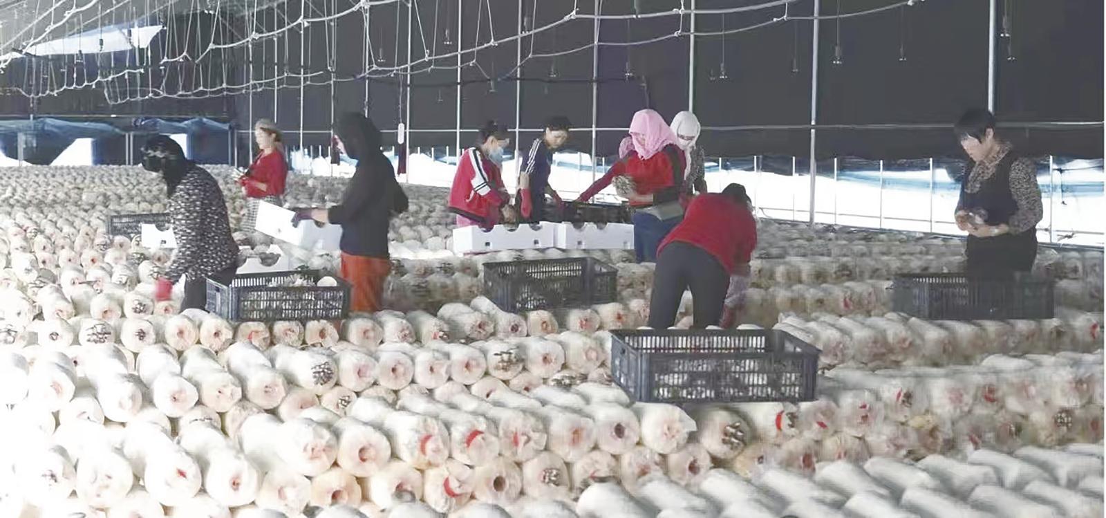 正寧縣山河鎮(zhèn)董莊村食用菌產(chǎn)業(yè)基地,工人在采摘蘑菇。 慶陽融媒記者 劉效國 攝