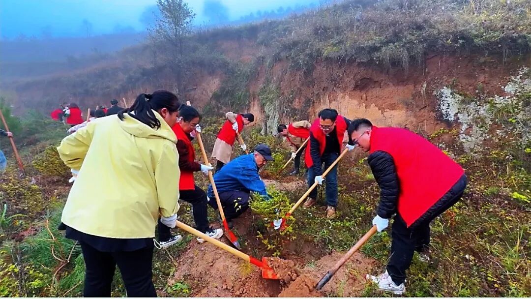 植樹現(xiàn)場(chǎng),大家分工協(xié)作,配合默契,或揮鍬鏟土,或扶正樹苗,或培實(shí)新土,每一個(gè)環(huán)節(jié)都一絲不茍。一棵棵新栽種的樹苗在秋風(fēng)中展現(xiàn)出勃勃生機(jī)。