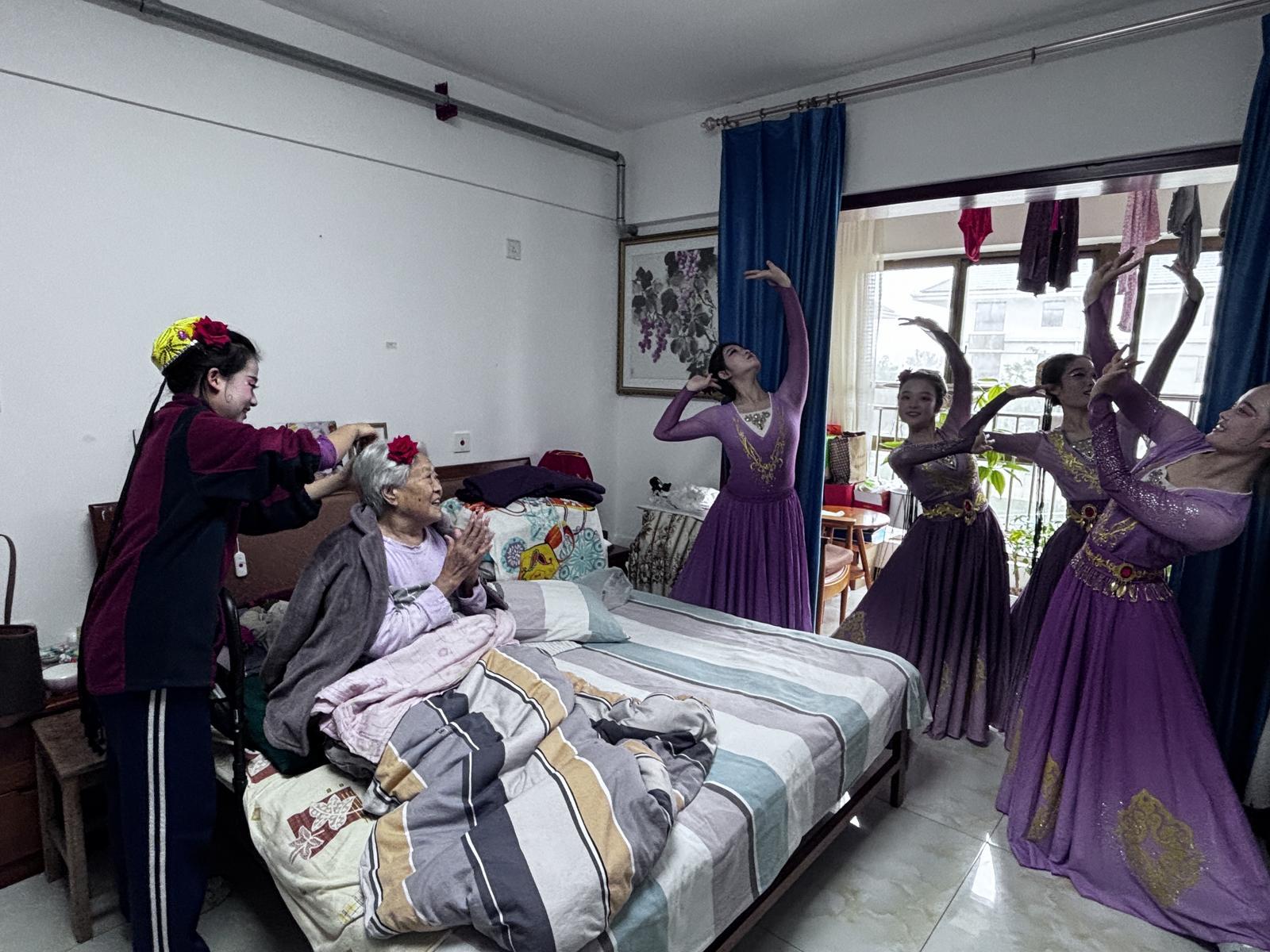 “演出小分隊(duì)”的同學(xué)們?cè)诜块g里為行動(dòng)不便的老人們獻(xiàn)上了文藝表演。整個(gè)活動(dòng)過(guò)程中,志愿者們禮貌周到、耐心細(xì)致,展現(xiàn)了慶陽(yáng)七中學(xué)子良好的精神風(fēng)貌和社會(huì)責(zé)任感?;顒?dòng)尾聲,志愿者們向老人們贈(zèng)送了準(zhǔn)備好的水果、牛奶等慰問(wèn)品,并送上重陽(yáng)節(jié)的美好祝愿。