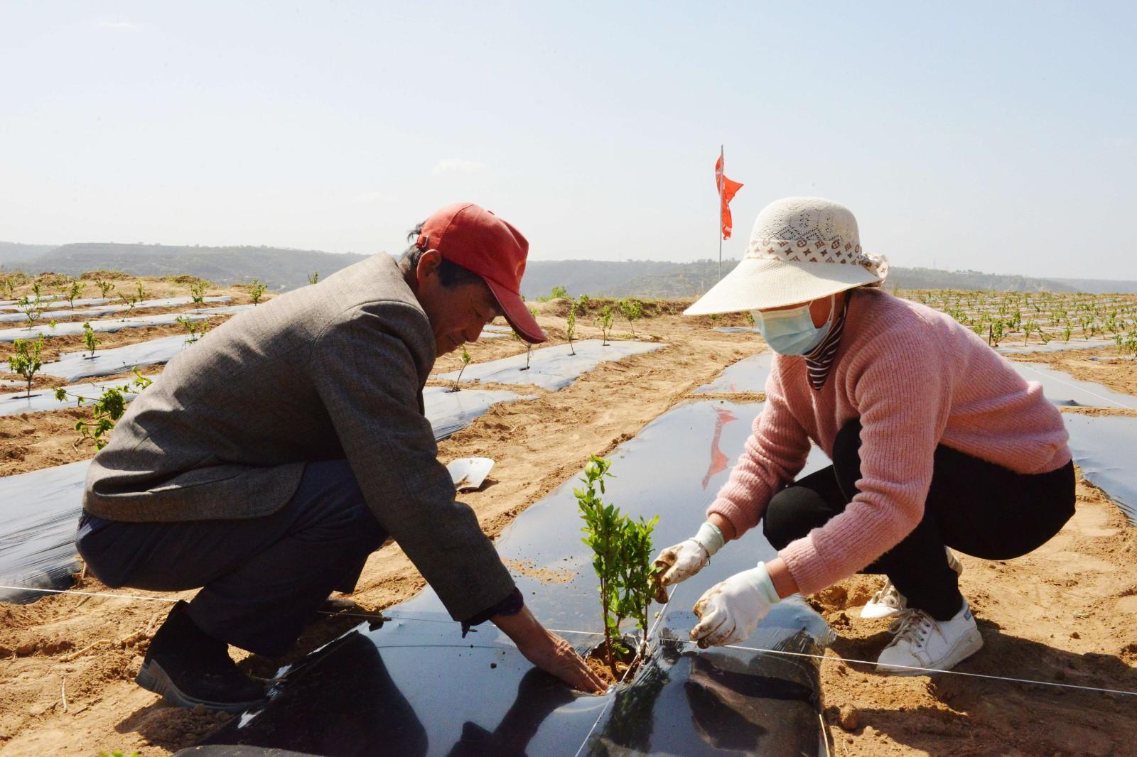 群眾在塬邊咀梢栽植金銀花(資料圖)