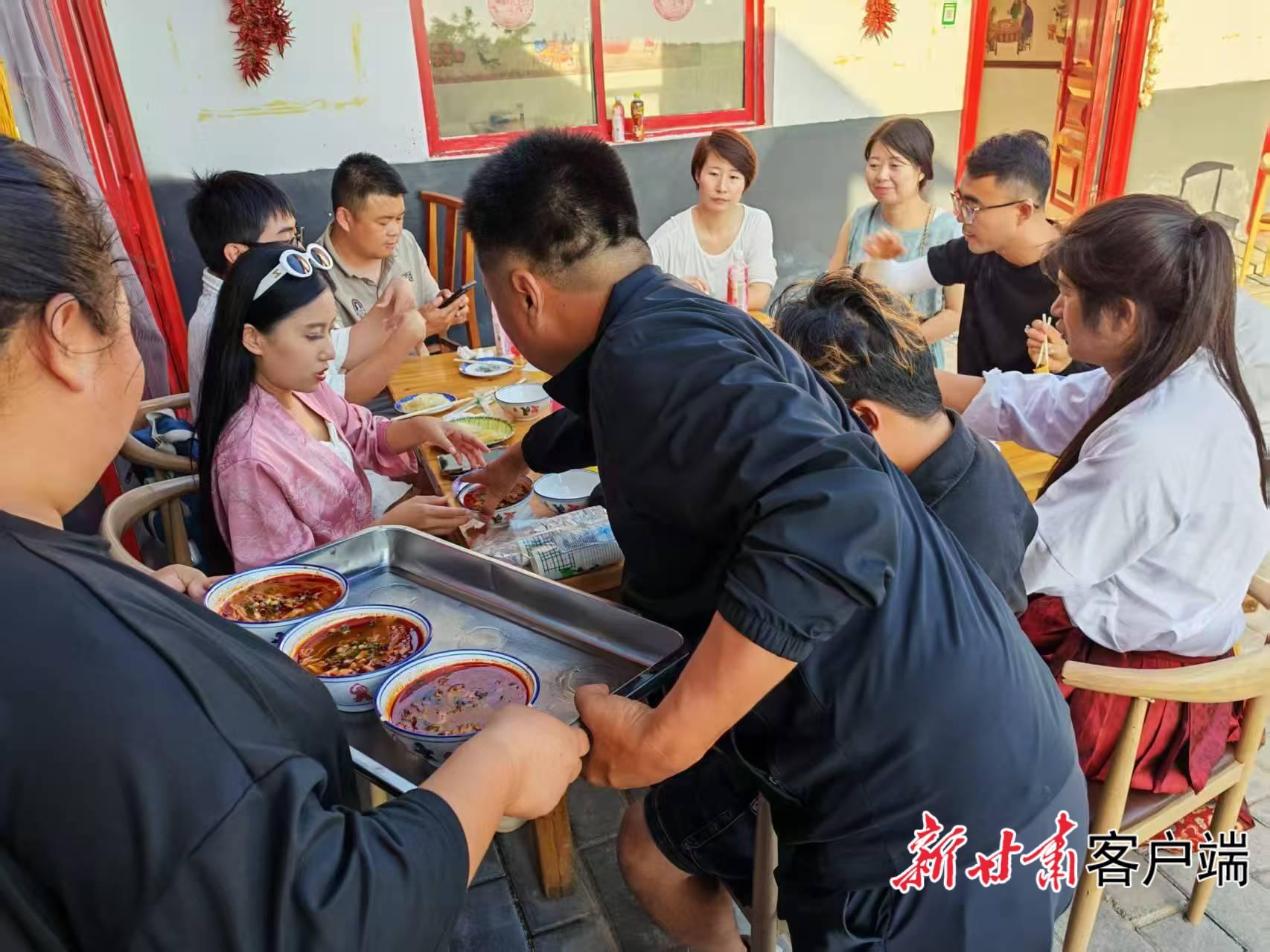 游客在農(nóng)家樂品嘗當(dāng)?shù)靥厣朗场D片由西坡鎮(zhèn)鎮(zhèn)政府提供
