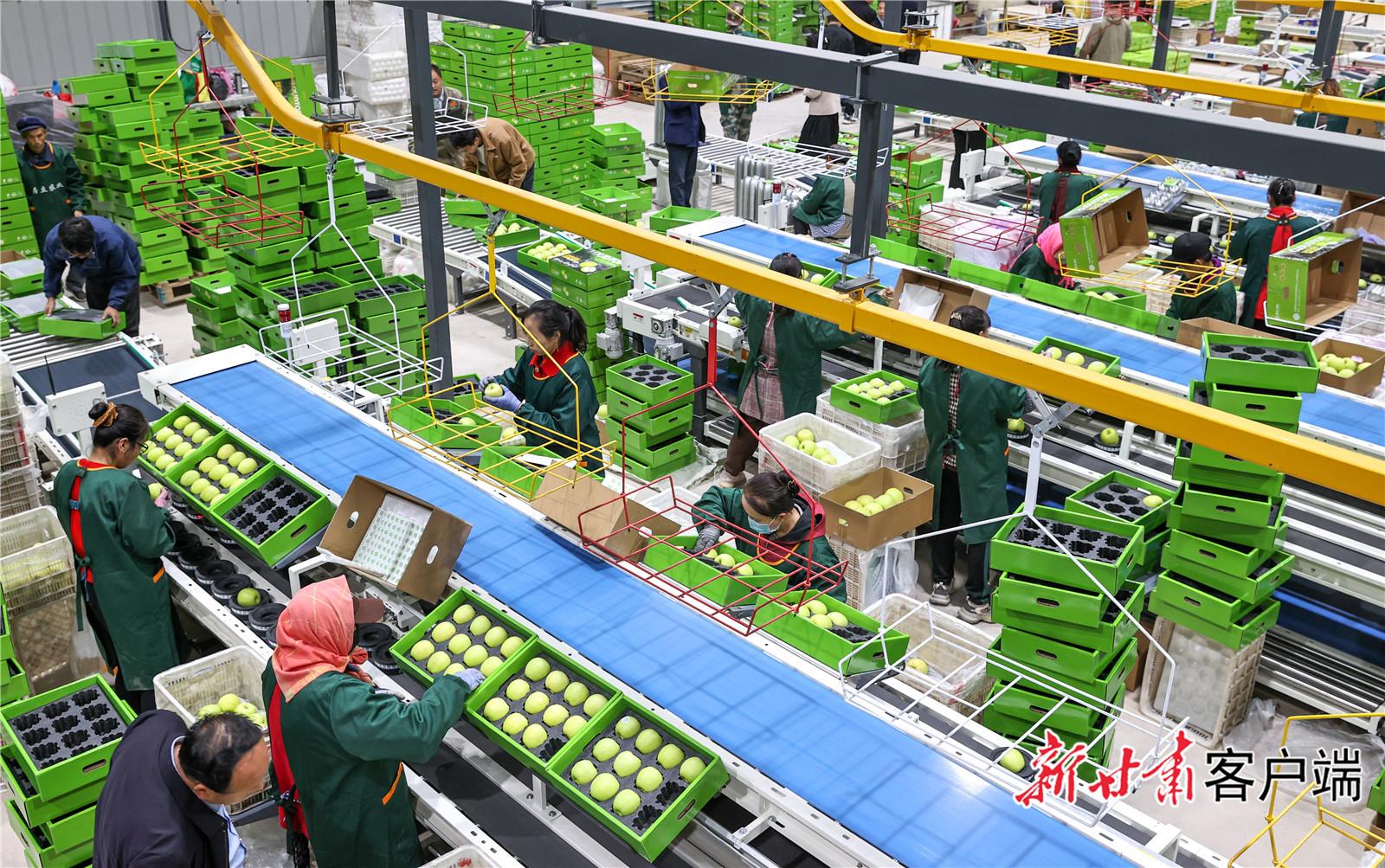 慶陽居立現(xiàn)代農(nóng)業(yè)發(fā)展有限責(zé)任公司蘋果自動(dòng)化分揀車間。