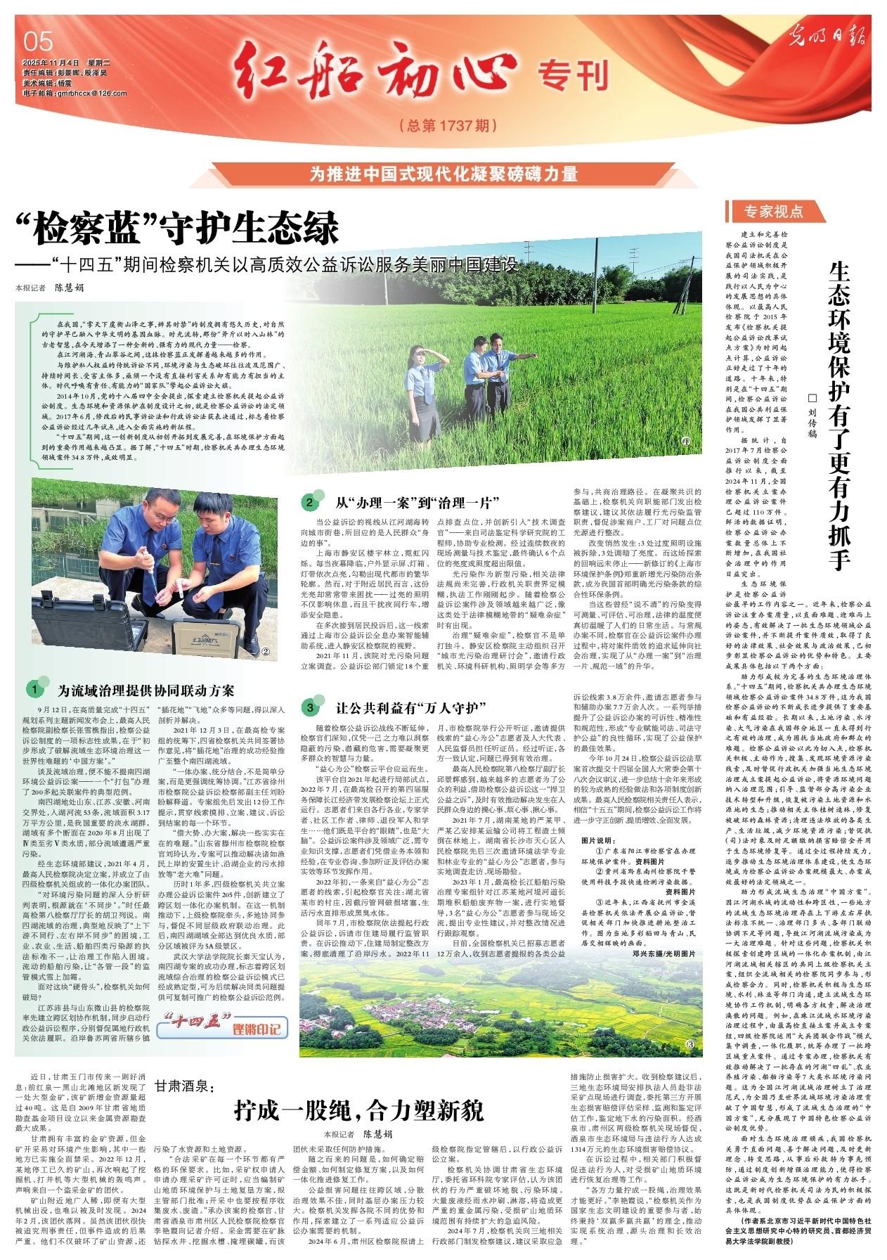 “各方力量擰成一股繩,治理效果才能更好?!崩钇G霞說,“檢察機(jī)關(guān)作為國家生態(tài)文明建設(shè)的重要參與者,始終秉持‘雙贏多贏共贏’的理念,推動(dòng)實(shí)現(xiàn)系統(tǒng)治理、源頭治理和長效治理?!?/p>