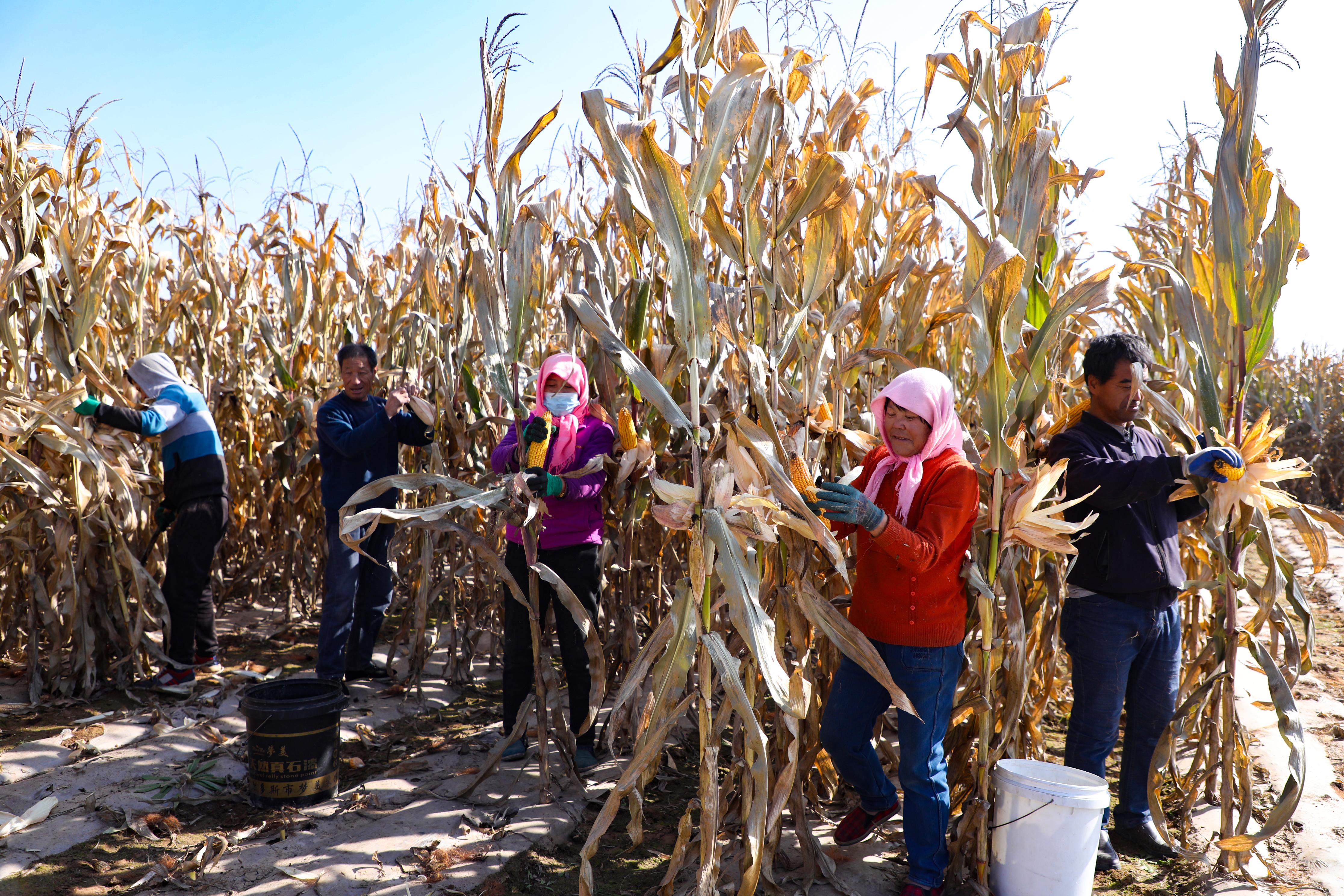 既有秋收玉米的金黃喜悅,
