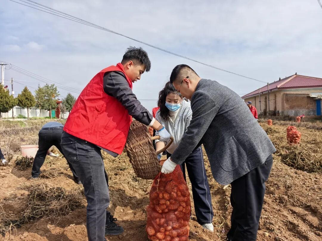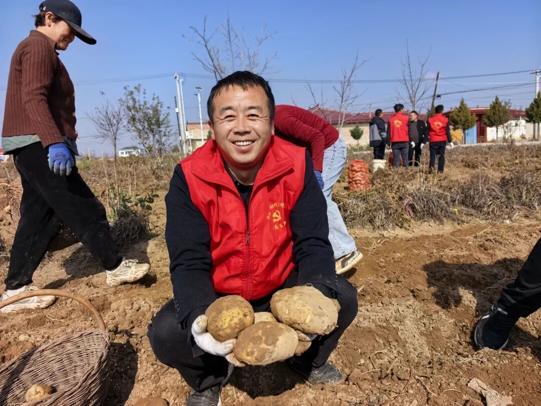活動(dòng)中,全體黨員干部攜帶編織袋,分工合作,在土豆地里挖的挖、撿的撿、搬的搬,齊心協(xié)力,幫助農(nóng)戶搶收。一個(gè)個(gè)金黃圓潤的“金疙瘩”,蘊(yùn)含著豐收的喜悅,讓大家干勁倍增。