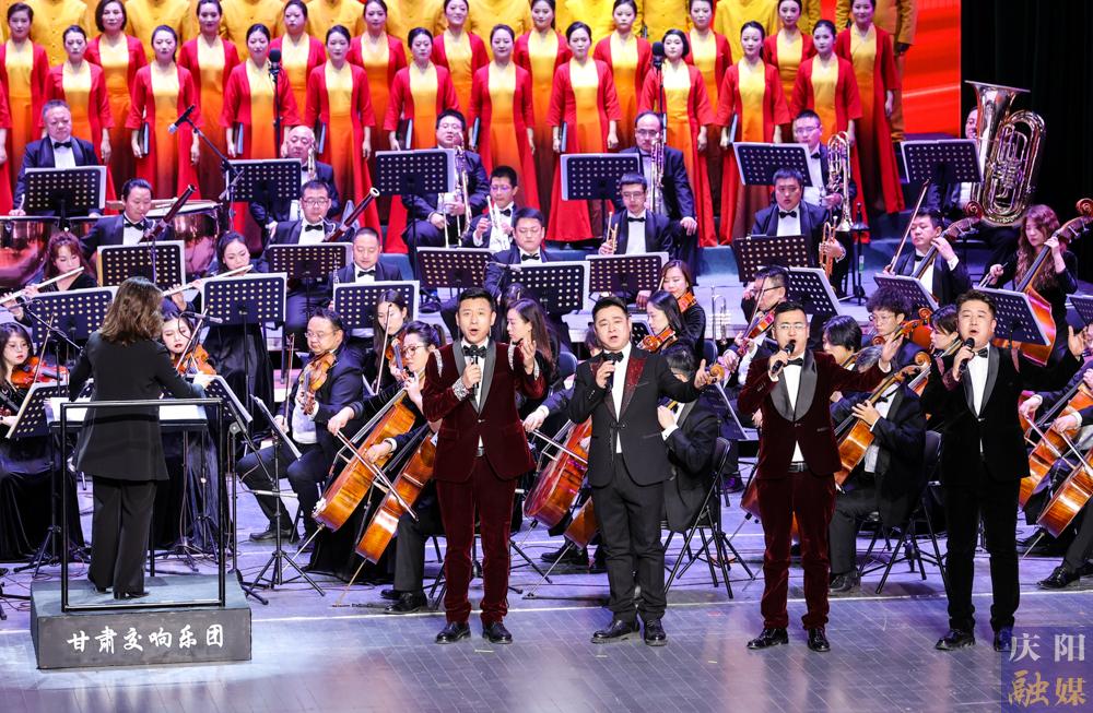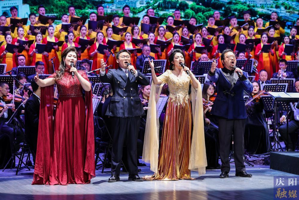 音樂會以“賡續(xù)紅色血脈 傳承南梁精神”為主題,特邀甘肅省歌劇院交響樂團(tuán),18位著名歌唱家攜手慶陽四大合唱團(tuán)共140余名演職人員登臺獻(xiàn)藝。演出以混聲合唱、情景表演唱等多元形式,完整呈現(xiàn)11首組歌與3首慶陽經(jīng)典民歌,《厚土》勾勒黃土地滄桑,《烽火陜甘邊》還原革命壯闊場景,尾聲《永遠(yuǎn)的南梁》將氛圍推向高潮,沉浸式體驗讓觀眾重溫陜甘邊革命根據(jù)地“落腳點與出發(fā)點”的光輝歷程。