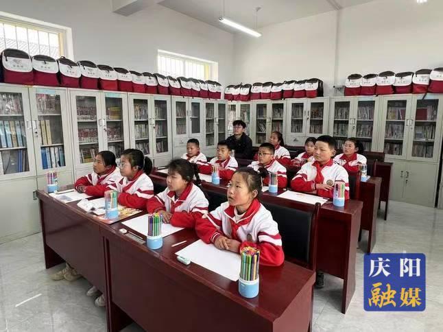慶陽市鎮(zhèn)原縣廟渠鎮(zhèn)孫寨立尊小學(xué)的學(xué)生正在通過專遞課堂上美術(shù)課。慶陽融媒記者王華攝