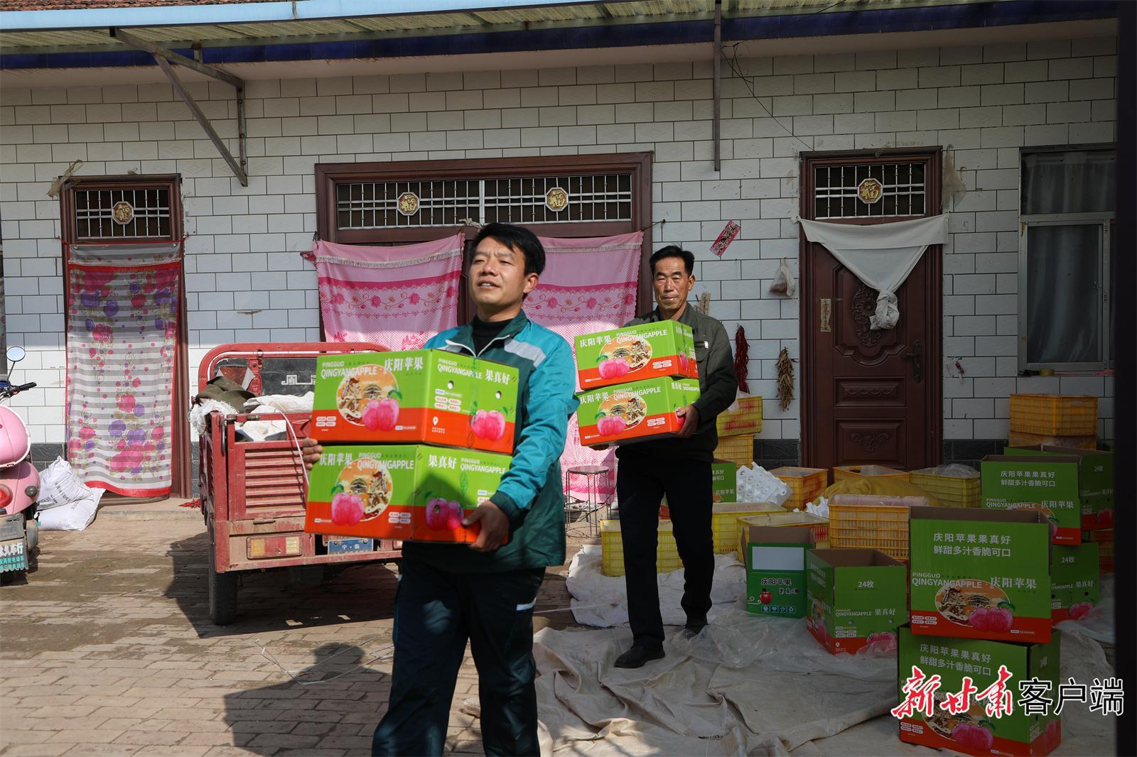 時下,正值蘋果上市銷售旺季,慶陽寧縣湘樂鎮(zhèn)蘋果種植大戶趙義軍的家里,紅彤彤的蘋果堆滿了院子,趙義軍一家正忙著給蘋果套袋、裝箱。