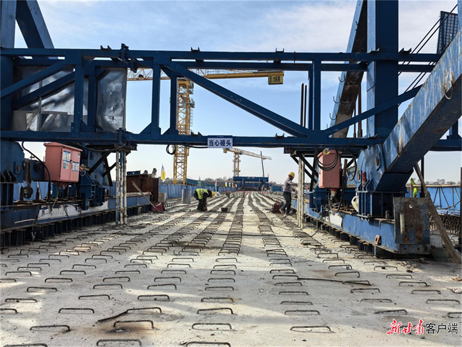 與此同時,在大橋懸臂現(xiàn)澆施工中,項目團隊采用掛籃懸臂現(xiàn)澆法,4個“T”構同步對稱推進,確保了施工安全與結構平衡。大橋合龍階段,綜合運用頂推、剛性支撐、臨時張拉與配重平衡等技術,成功保障了橋梁線形的流暢美觀與主體結構的長期穩(wěn)定。