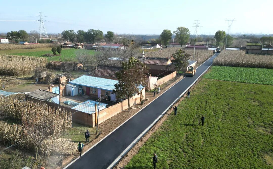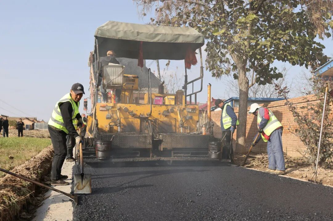 在什社鄉(xiāng)新興村道路提質(zhì)改造項(xiàng)目現(xiàn)場(chǎng),攤鋪機(jī)勻速前行,均勻鋪設(shè)著瀝青;壓路機(jī)緊隨其后,來回壓實(shí)新路面;運(yùn)料車有序穿梭,保障材料供應(yīng)。工人們則忙著平整路面、修整邊角,機(jī)械的轟鳴與忙碌的身影交織成一幅熱火朝天的建設(shè)圖景。