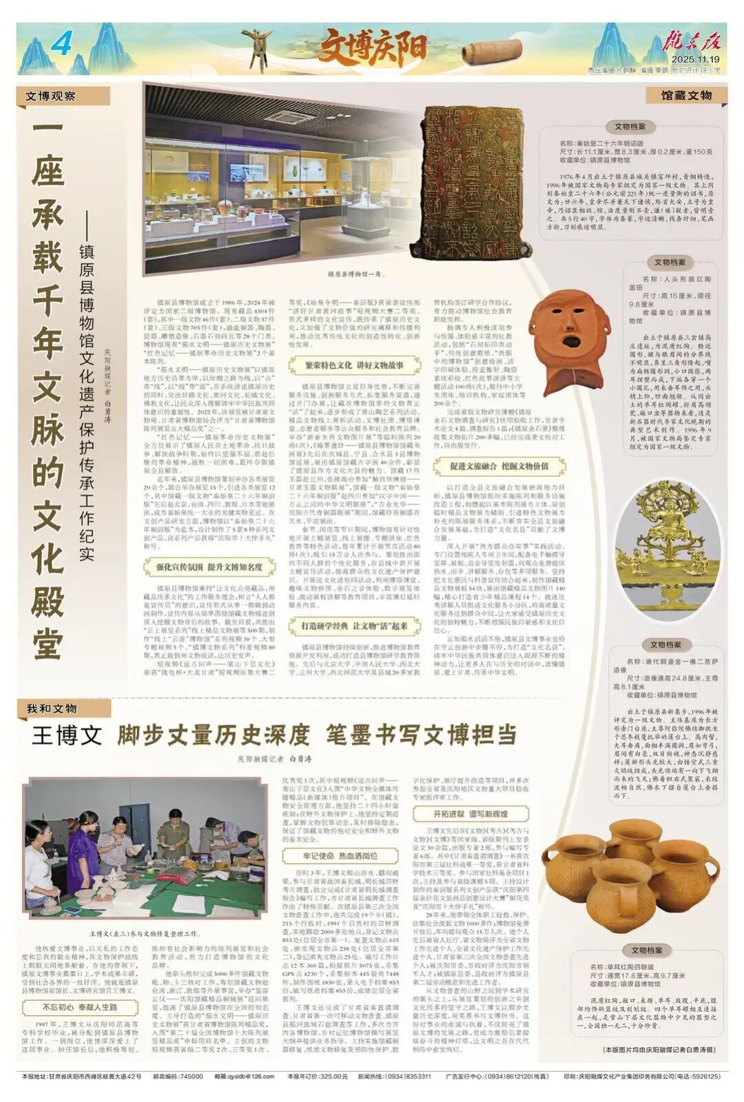 從文物普查的山野之間到學(xué)術(shù)研究的案頭之上,從展覽策劃的創(chuàng)新之舉到文化傳承的堅守之路,王博文以腳步丈量歷史深度,用筆墨書寫文博擔當。這份對事業(yè)的赤誠與執(zhí)著,不僅照亮了鎮(zhèn)原文博的發(fā)展之路,更成為激勵后輩接續(xù)奮斗的精神燈塔,讓文明之花在代代相傳中愈發(fā)絢爛。