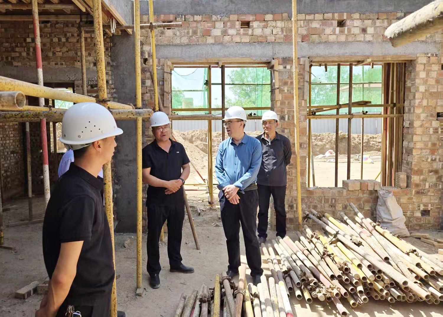 2025年5月13日,張紅林(右一)在何坳村調(diào)研失地農(nóng)民安置點建設(shè)情況。