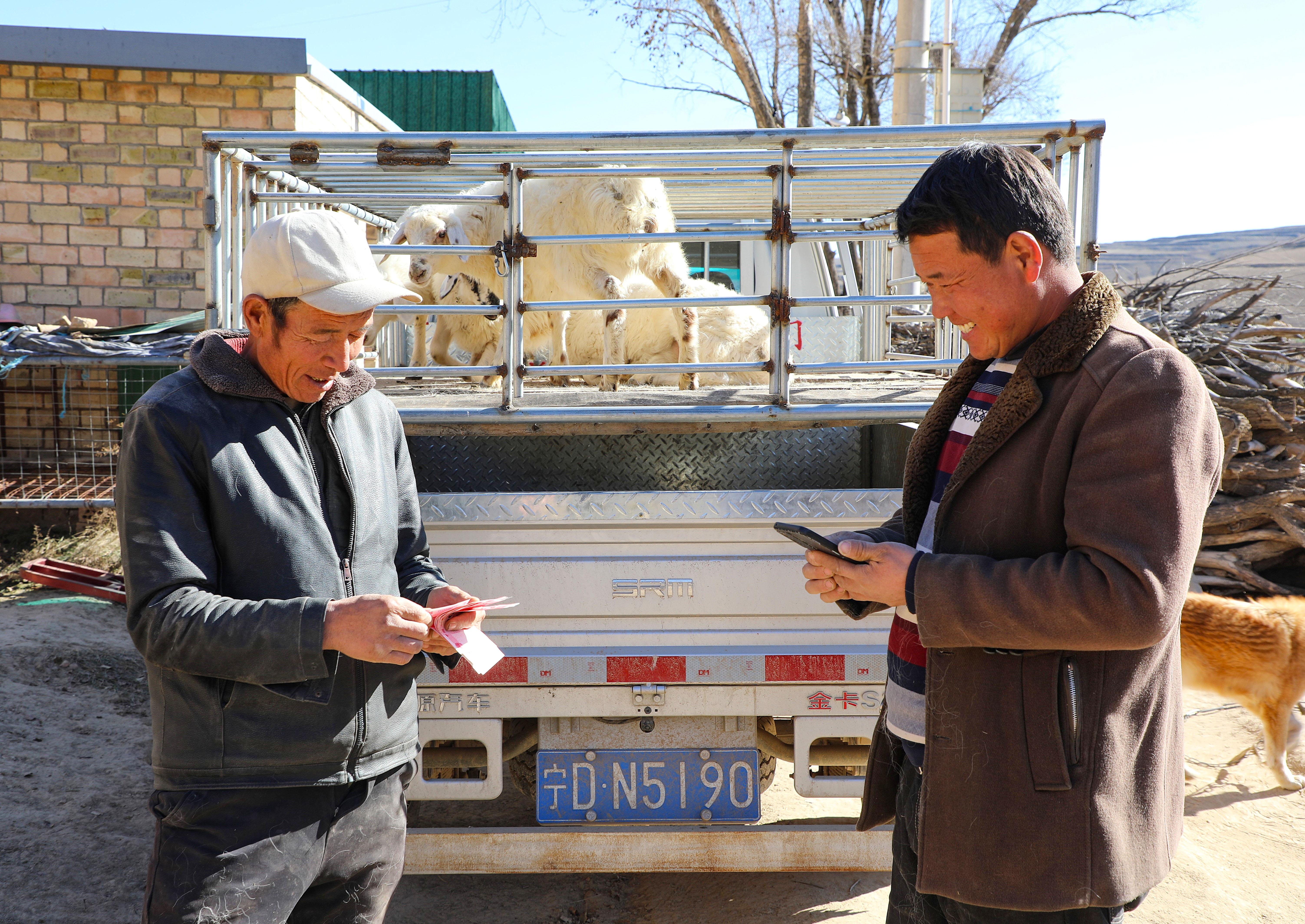 11月21日,初冬的環(huán)縣蘆家灣鄉(xiāng)透著清冷,但王莊村毛西掌組村民毛會省的心里卻暖意融融——這天,本村收羊服務隊再次上門,以每只900元的價格,買走了他家4只毛色光滑、膘肥體壯的湖羊雜交羊羔。