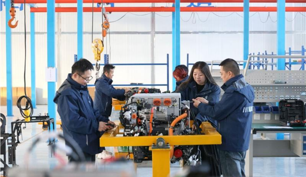 在下線儀式現(xiàn)場(chǎng),這臺(tái)嶄新的氫燃料電池發(fā)動(dòng)機(jī)成為全場(chǎng)焦點(diǎn)。工作人員正有序進(jìn)行下線后的初步檢測(cè)與整理工作。這臺(tái)承載著技術(shù)突破與產(chǎn)業(yè)希望的“慶陽(yáng)造”發(fā)動(dòng)機(jī),即將啟程奔赴下一站。