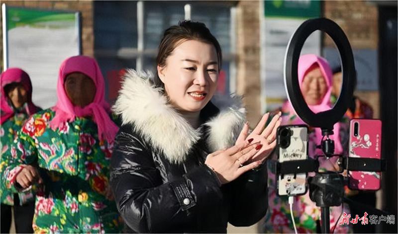 楊清艷帶領(lǐng)村民直播賣貨。新甘肅·甘肅日?qǐng)?bào)通訊員 喬潔 攝