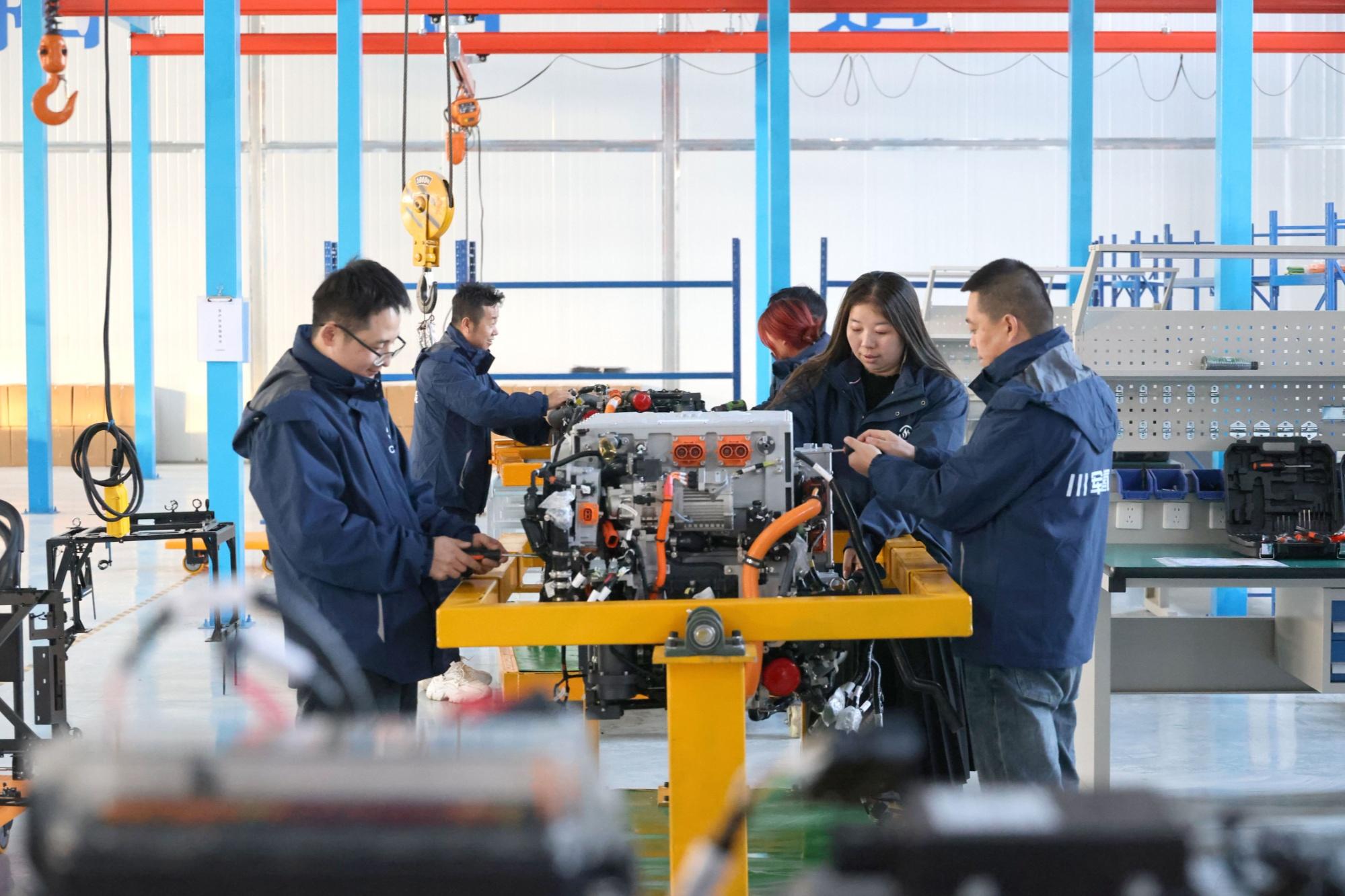 在川軍氫能(慶陽)科技有限公司生產(chǎn)車間,工作人員正有條不紊地開展下線后的初步檢測與整理工作?!敖裉煜戮€的這臺‘慶陽造’的氫燃料電池發(fā)動機,即將送入上海檢測中心進行燃料電池公告的認證檢測,認證完之后送入整車企業(yè),投放市場?!贝ㄜ姎淠埽☉c陽)科技有限公司總經(jīng)理龔錫強說。