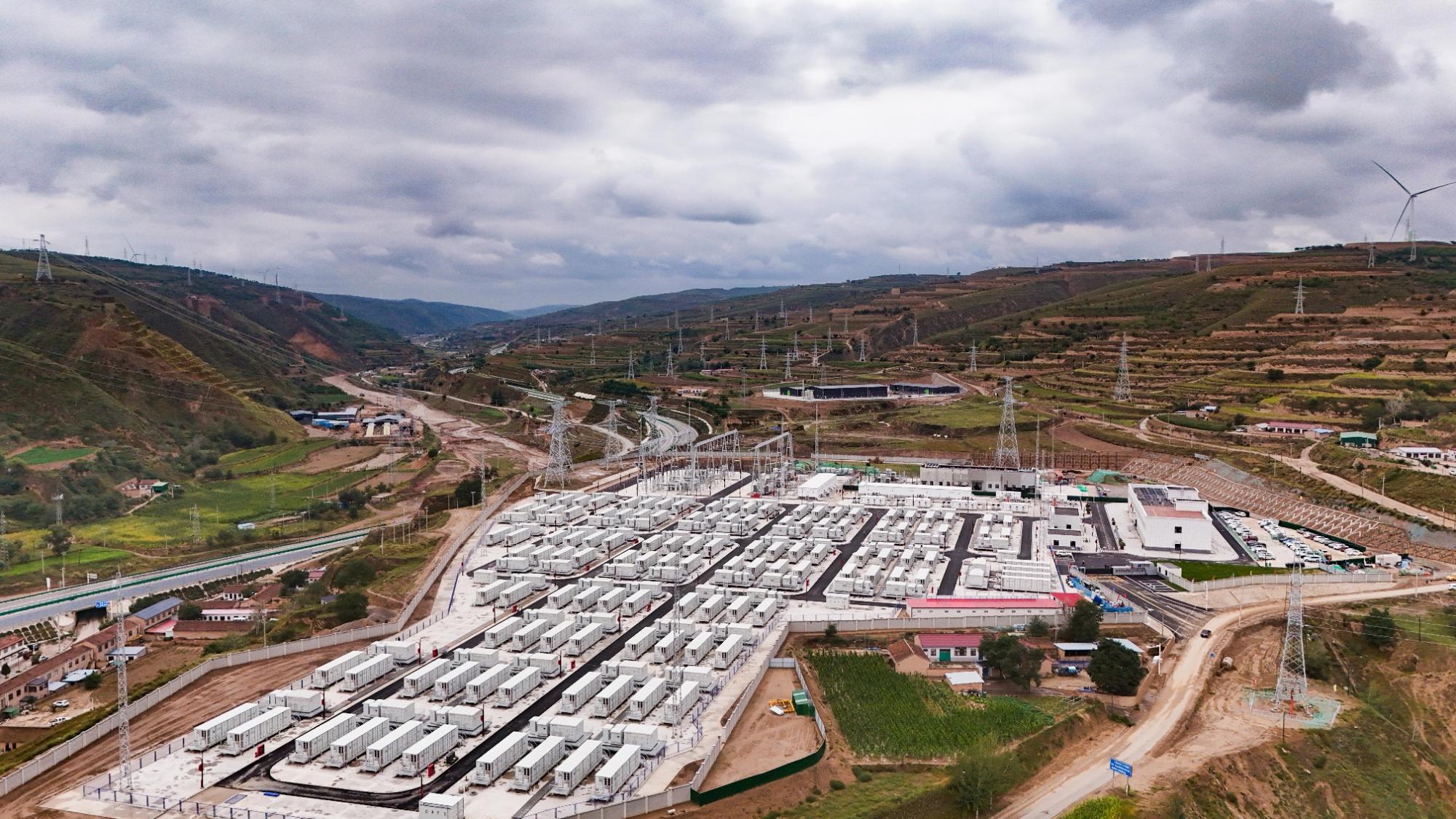 位于環(huán)縣虎洞鎮(zhèn)的華能隴東多能互補綜合能源基地新能源配套F1儲能電站(喬潔 攝)