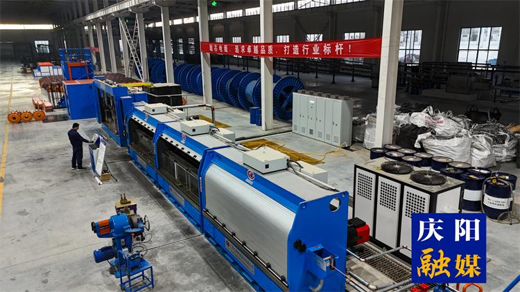 在慶城縣驛馬工業(yè)集中區(qū),慶陽超芯電線電纜有限公司的生產(chǎn)車間內(nèi),電纜在流水線上有序流轉(zhuǎn)。