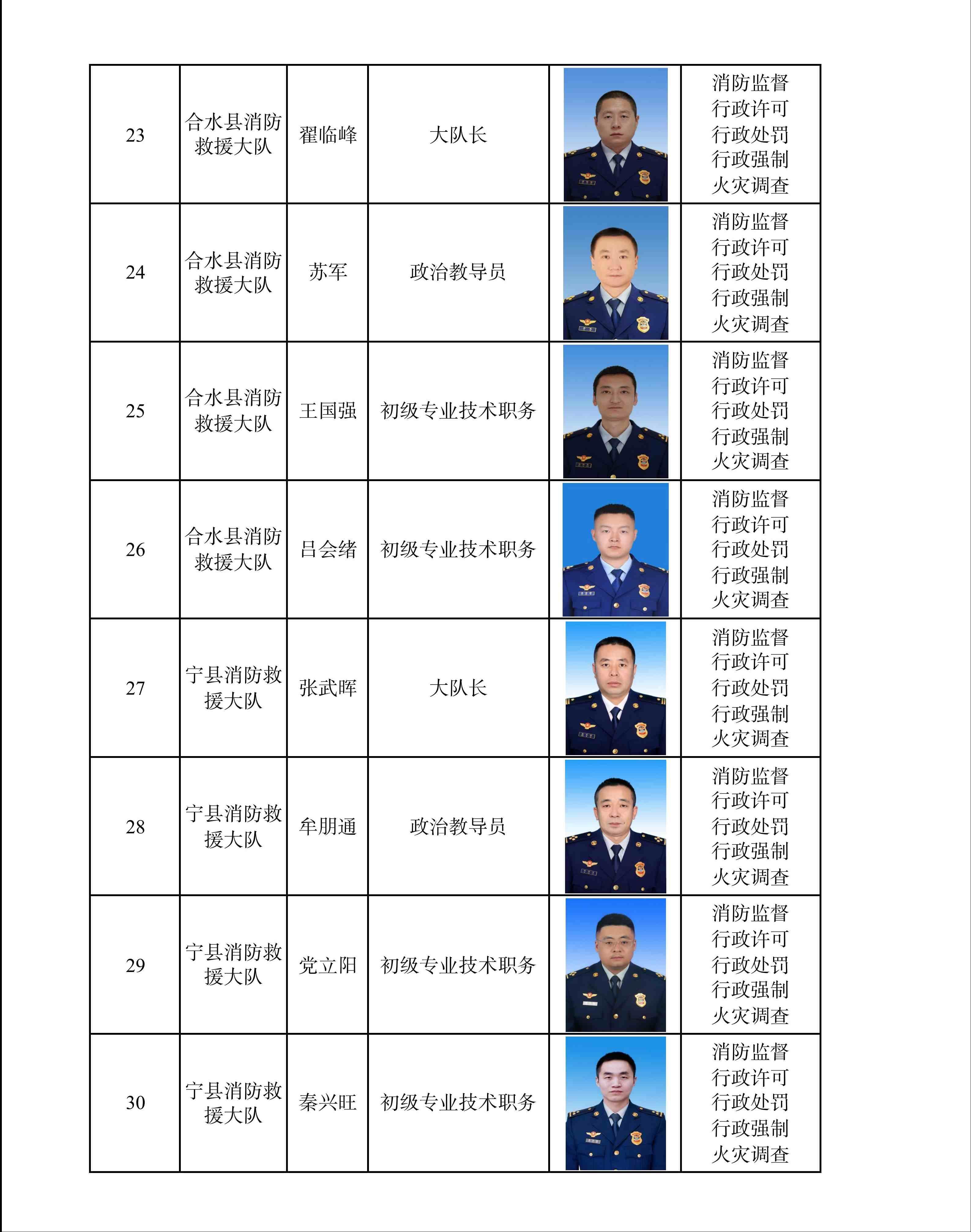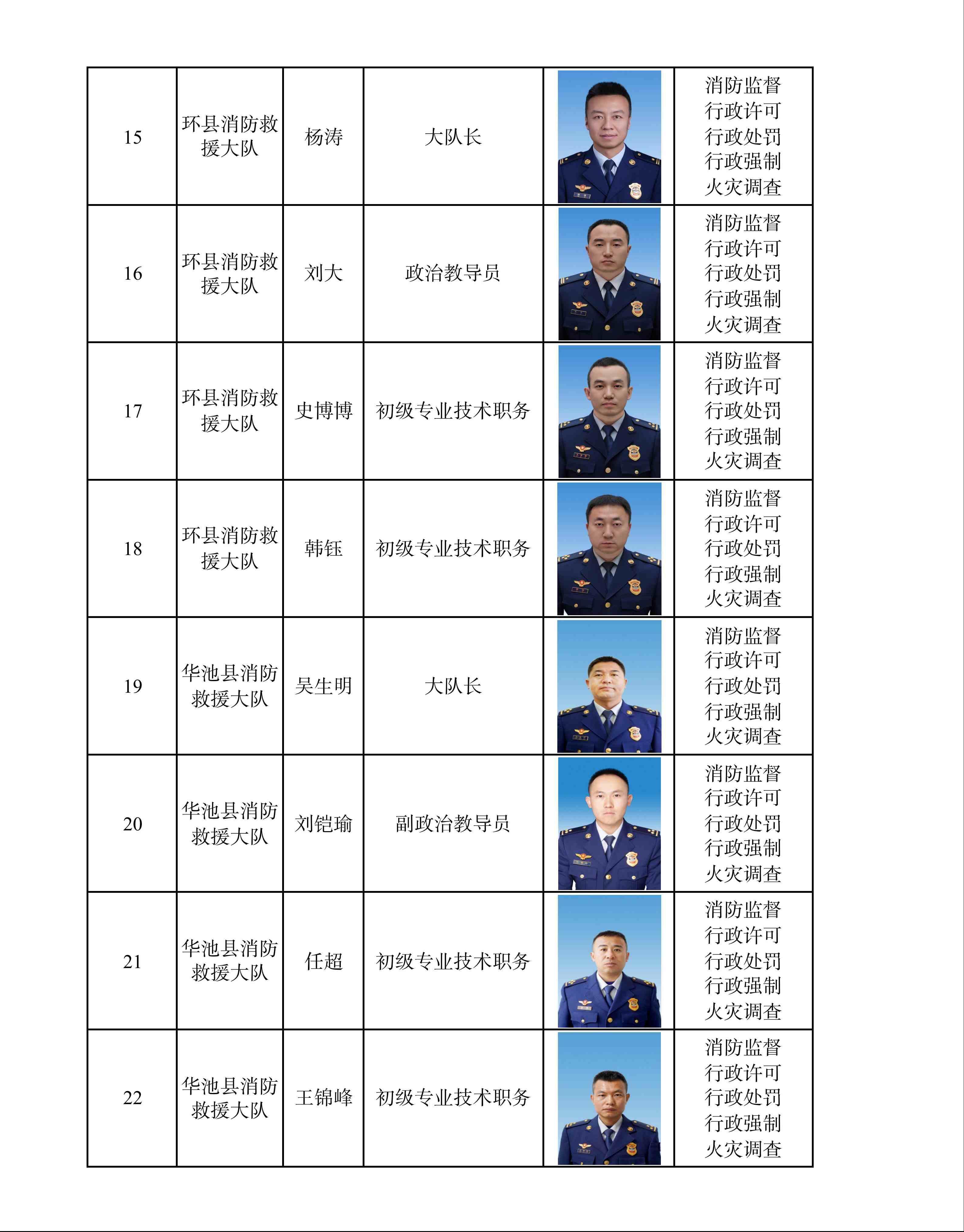 二、消防救援機(jī)構(gòu)執(zhí)法主體及人員、職責(zé)權(quán)限、辦公地址、聯(lián)系方式、執(zhí)法主體及人員