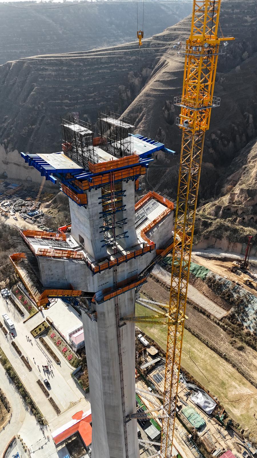 慶陽網訊(慶陽融媒記者 俄少飛)11月27日,在平慶鐵路鎮(zhèn)原段蒲河特大橋建設現場,工人們正在進行橋墩上部結構施工。作為全線控制性工程,該橋全長833.12米,以146.6米的橋高、220米的主跨凌空跨越溝壑,創(chuàng)新采用空腹式剛構橋結構,實現了跨越能力與景觀效果的同步提升。
