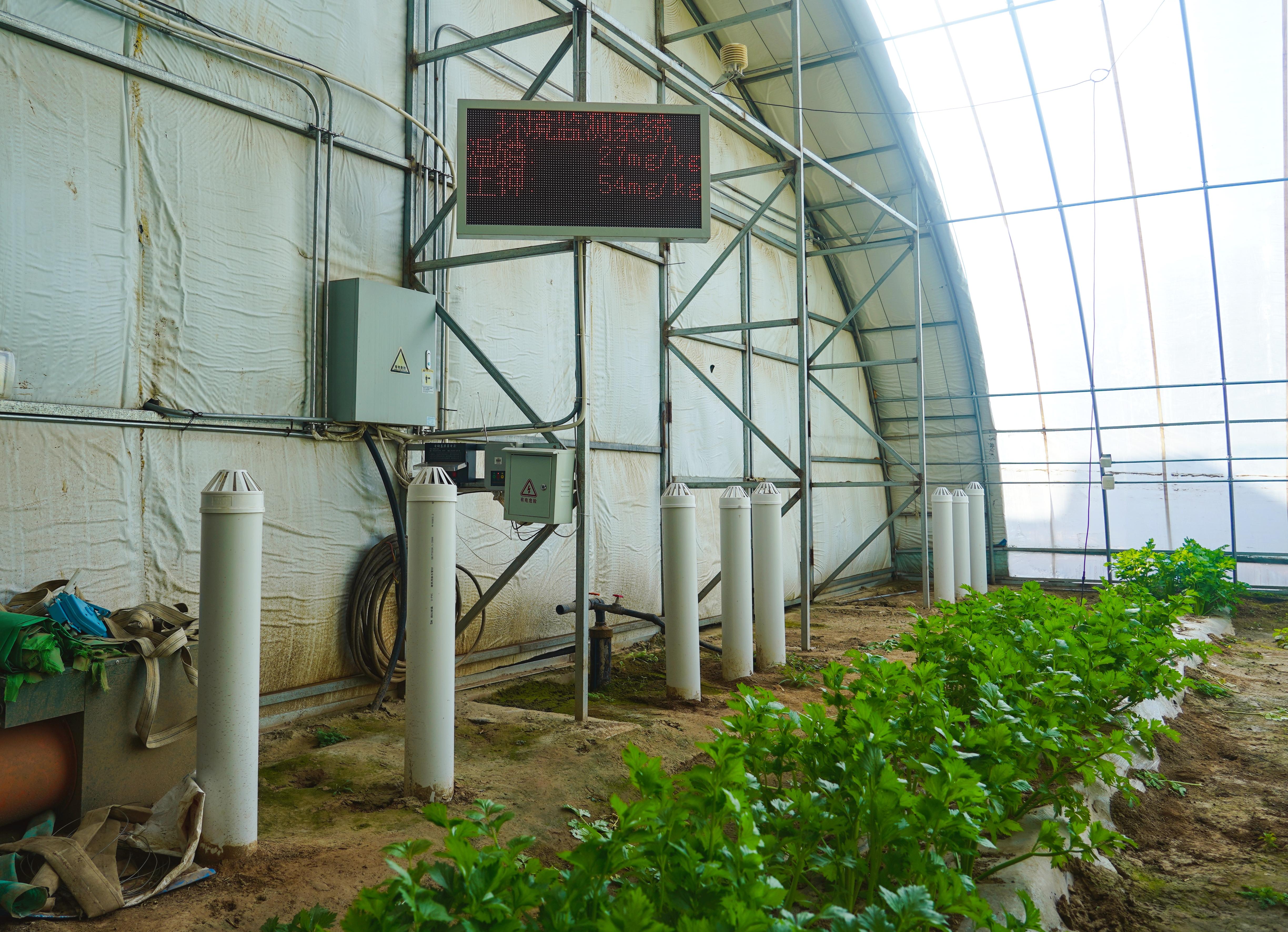 然而科技的力量在這里遠(yuǎn)不止于此。“咱們每個(gè)棚內(nèi)都配備有自動(dòng)環(huán)境檢測(cè)系統(tǒng),24小時(shí)不間斷監(jiān)測(cè)大棚內(nèi)的環(huán)境數(shù)據(jù)……”隨著園內(nèi)工作人員的指引,只見(jiàn)棚內(nèi)裝配的電子屏幕上實(shí)時(shí)顯示著棚內(nèi)溫度、濕度及土壤PH值等各類(lèi)數(shù)據(jù),如同一位貼心的“健康管家”,為種植管理提供精準(zhǔn)的科學(xué)依據(jù)。