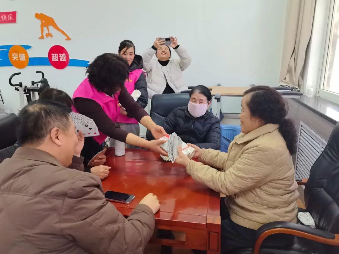 在社區(qū)棋牌室,一場(chǎng)溫馨熱鬧的“便民服務(wù)微集市”拉開(kāi)帷幕。社區(qū)工作人員與巾幗家政服務(wù)驛站的志愿者們化身“暖心使者”,為正在休閑娛樂(lè)的老人們送上冬日里的多重關(guān)懷。志愿者們?yōu)槔先酥鹨话l(fā)放暖心食堂就餐卡,貼心地為他們送上一次性水杯,戴上溫暖的帽子和圍巾,叮囑大家注意防寒保暖。現(xiàn)場(chǎng)設(shè)立的免費(fèi)理療服務(wù)點(diǎn)前人氣十足,專業(yè)理療師為老人們提供肩頸放松按摩,有效舒緩身體疲勞,貼心的服務(wù)贏得了老人們的連連稱贊。