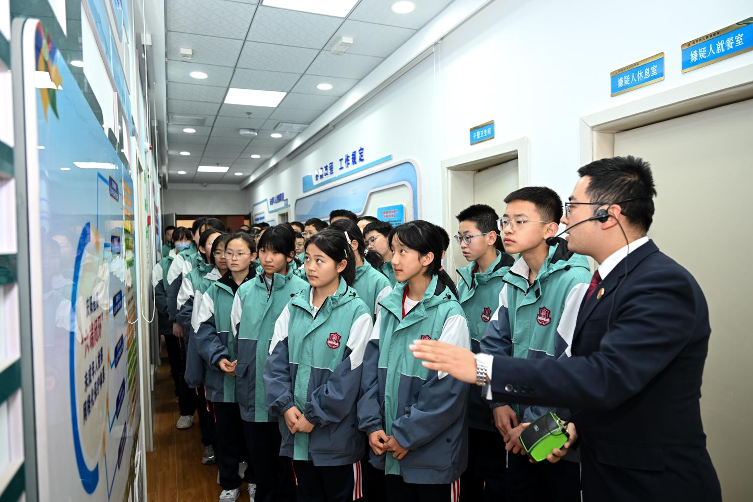 師生們參觀未成年人關(guān)愛(ài)教育中心法律認(rèn)知館。