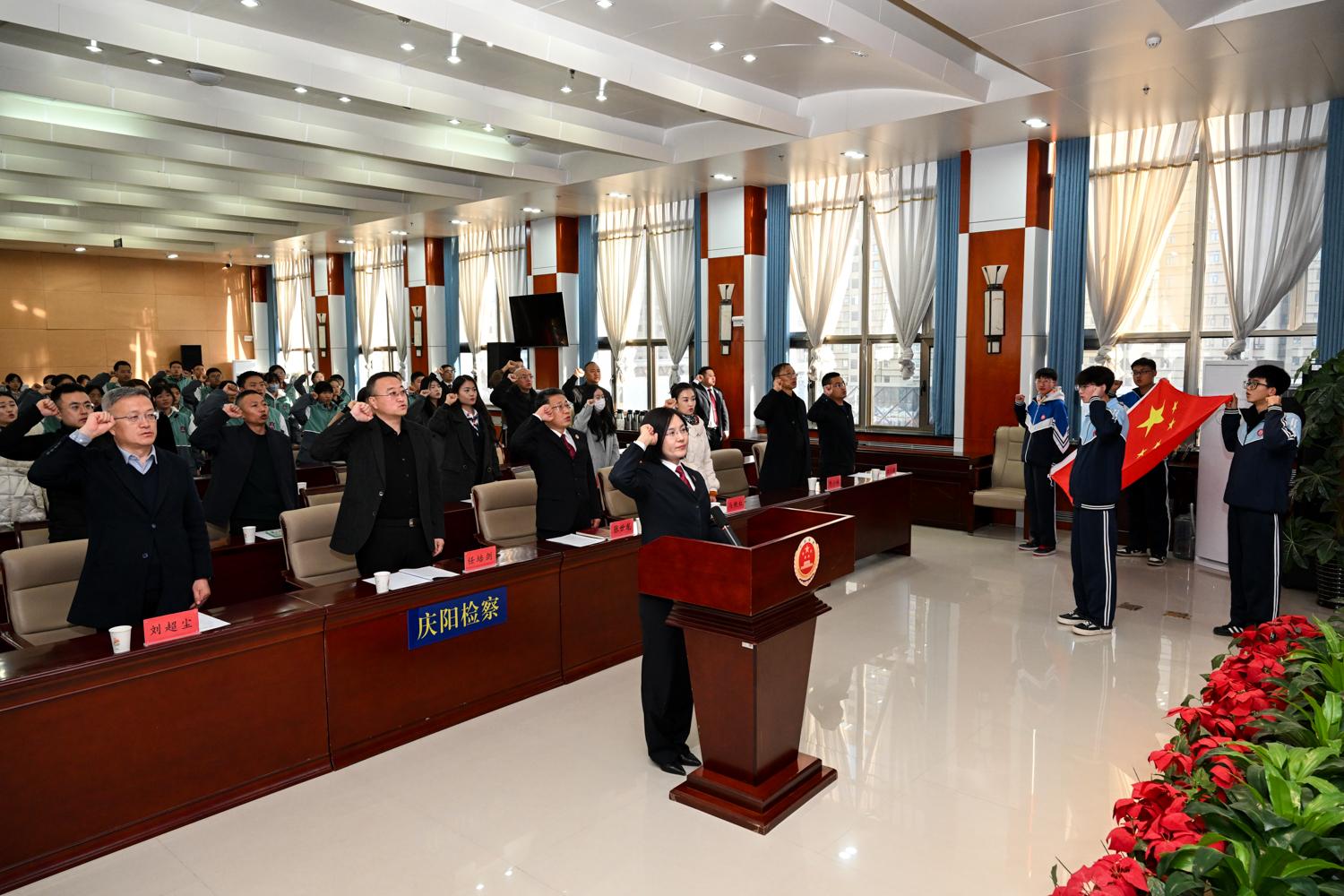 慶陽(yáng)網(wǎng)訊(慶陽(yáng)融媒記者 俄少飛)12月2日,由共青團(tuán)慶陽(yáng)市委、慶陽(yáng)市人民檢察院、慶陽(yáng)市教育局聯(lián)合主辦的“青春與法同行 成長(zhǎng)與法相伴”青少年模擬法庭活動(dòng)在慶陽(yáng)市人民檢察院舉行。北師大慶陽(yáng)實(shí)驗(yàn)學(xué)校及慶陽(yáng)市西峰區(qū)職業(yè)中等專(zhuān)業(yè)學(xué)校的數(shù)十名學(xué)生及家長(zhǎng)代表走進(jìn)檢察機(jī)關(guān),沉浸式接受法治教育。
