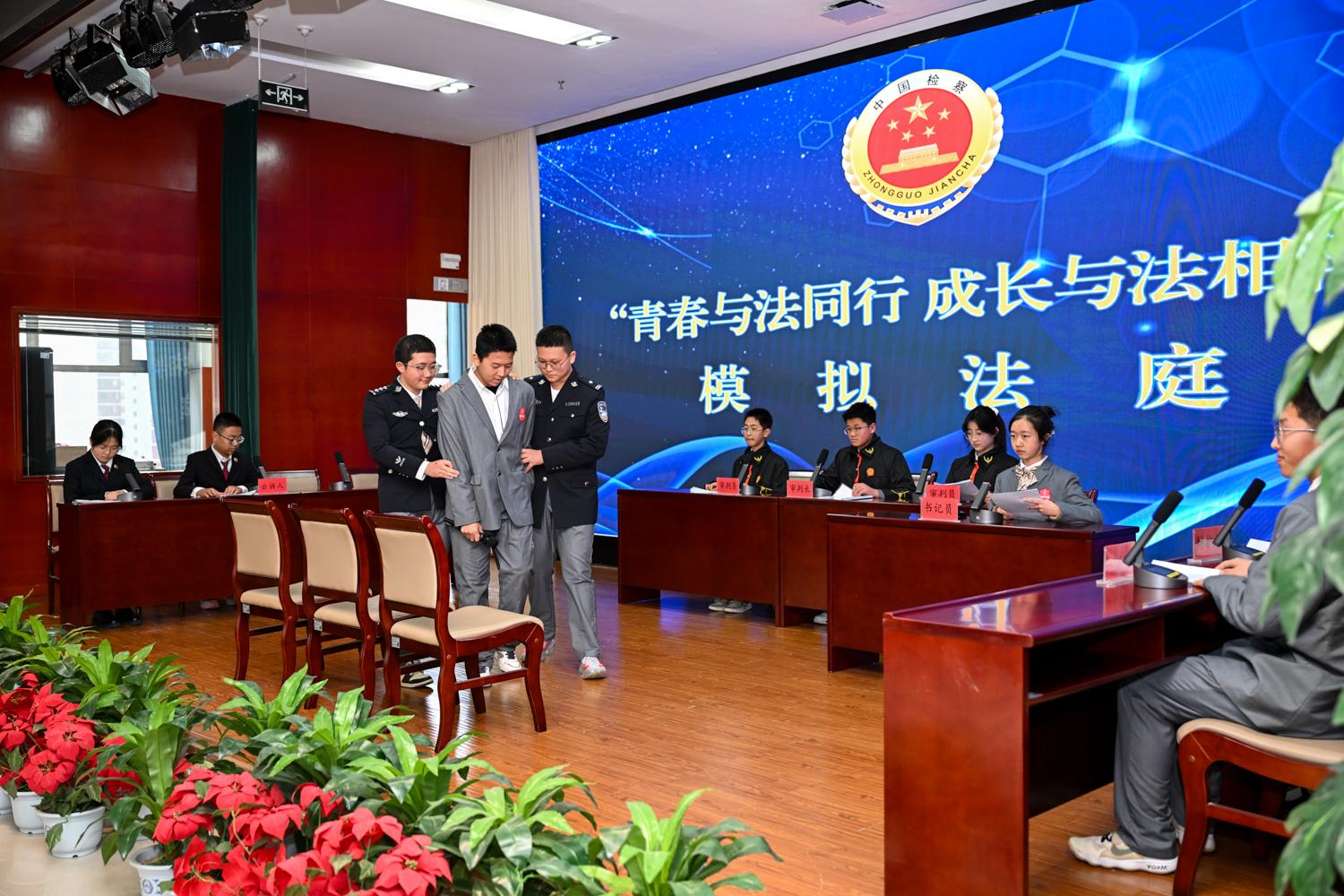 模擬法庭庭審現(xiàn)場(chǎng)。