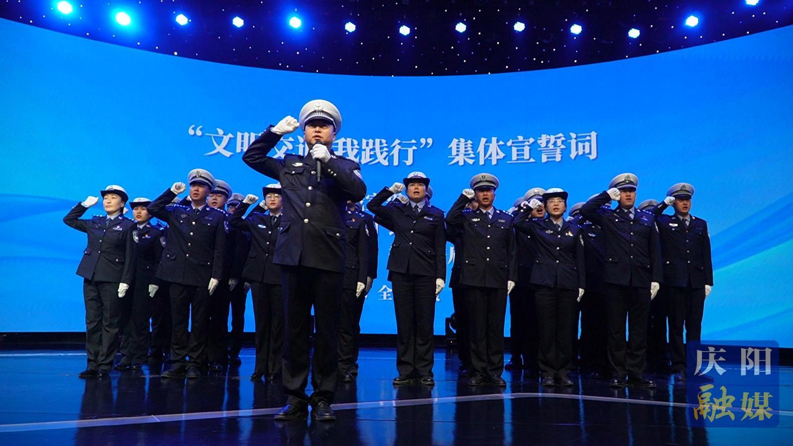 活動現(xiàn)場,一段《2025年慶陽公安交警感人瞬間》視頻,深情展現(xiàn)了交通守護者們的堅守與奉獻?,F(xiàn)場展播了從620件參賽作品中脫穎而出的優(yōu)秀征文、攝影、繪畫和短視頻,創(chuàng)作者們用文字、鏡頭和畫筆,生動詮釋了對文明交通的理解與呼吁。新聘的“文明交通宣傳員”和“金牌交通安全宣講員”接過了傳遞安全理念的接力棒。在領誓人的帶領下,全場共同發(fā)出“文明交通、禮行天下”的鏗鏘誓言,將現(xiàn)場氣氛推向高潮。