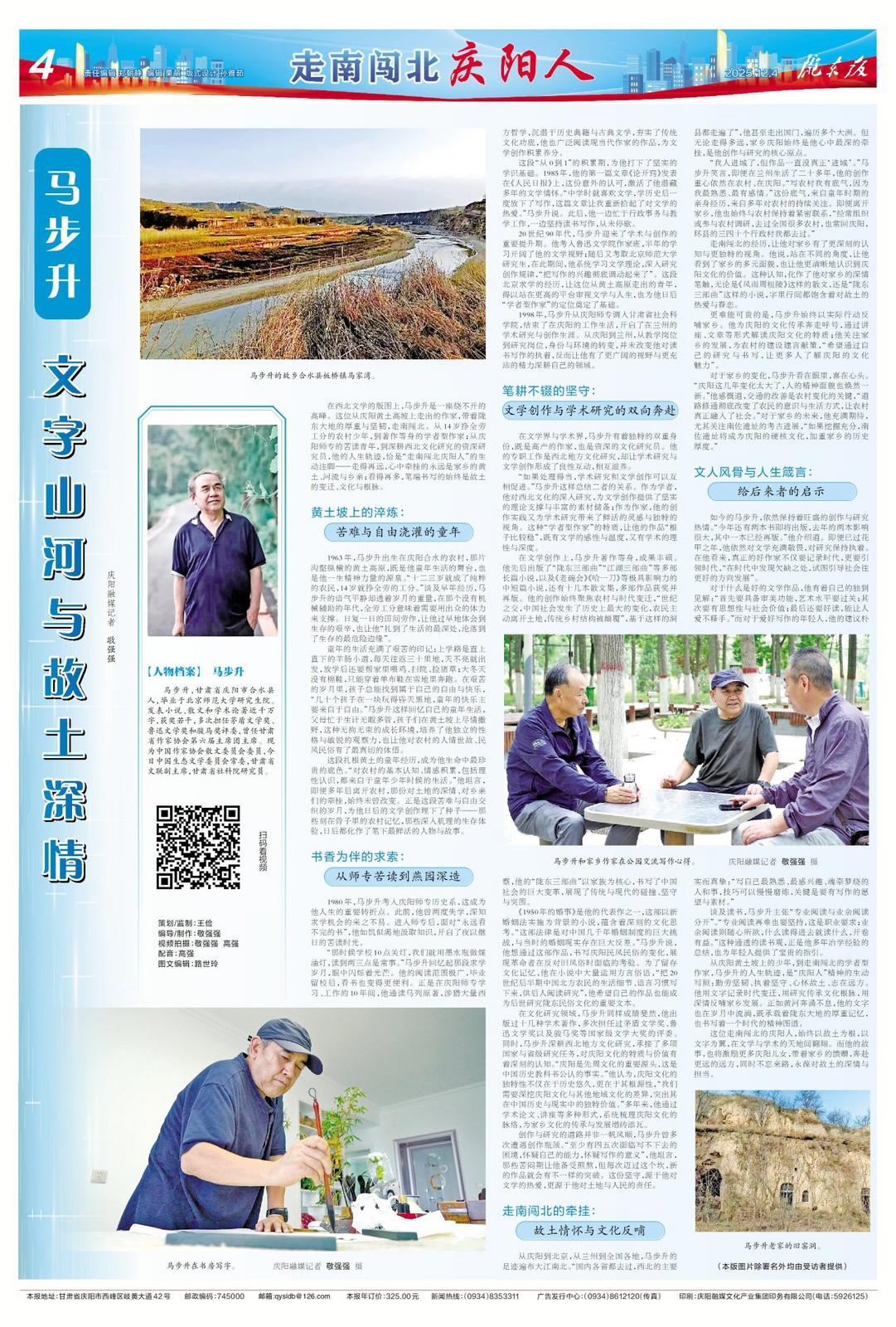 從慶陽黃土坡上的少年,到走南闖北的學者型作家,馬步升的人生軌跡,是“慶陽人”精神的生動寫照:勤勞堅韌、執(zhí)著堅守、心懷故土、志在遠方。他用文字記錄時代變遷,用研究傳承文化根脈,用深情反哺家鄉(xiāng)發(fā)展。正如黃河奔涌不息,他的文字也在歲月中流淌,既承載著隴東大地的厚重記憶,也書寫著一個時代的精神圖譜。
