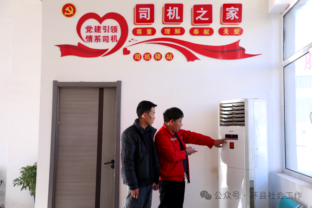 環(huán)縣以服務先行的理念,讓黨組織不僅建起來,更切實轉起來、真正活起來。 面對新就業(yè)群體“吃飯難、喝水難、休息難、充電難”等現(xiàn)實問題,環(huán)縣整合資源,按照“就近就便、實用管用”原則,高標準建設一批“暖心驛站”“司機之家”。