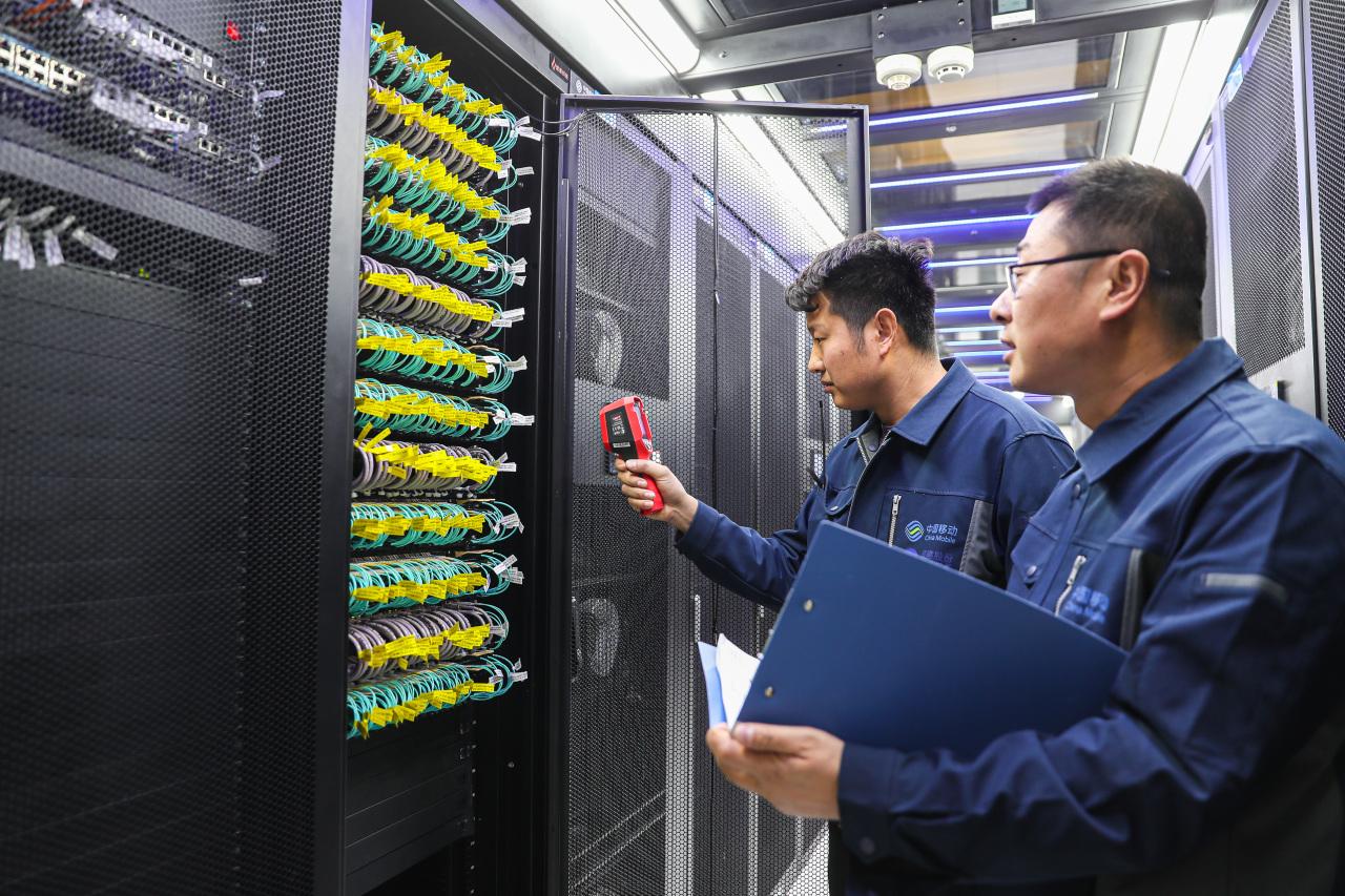工作人員在中國(guó)移動(dòng)(甘肅·慶陽(yáng))數(shù)據(jù)中心巡檢。(資料圖)