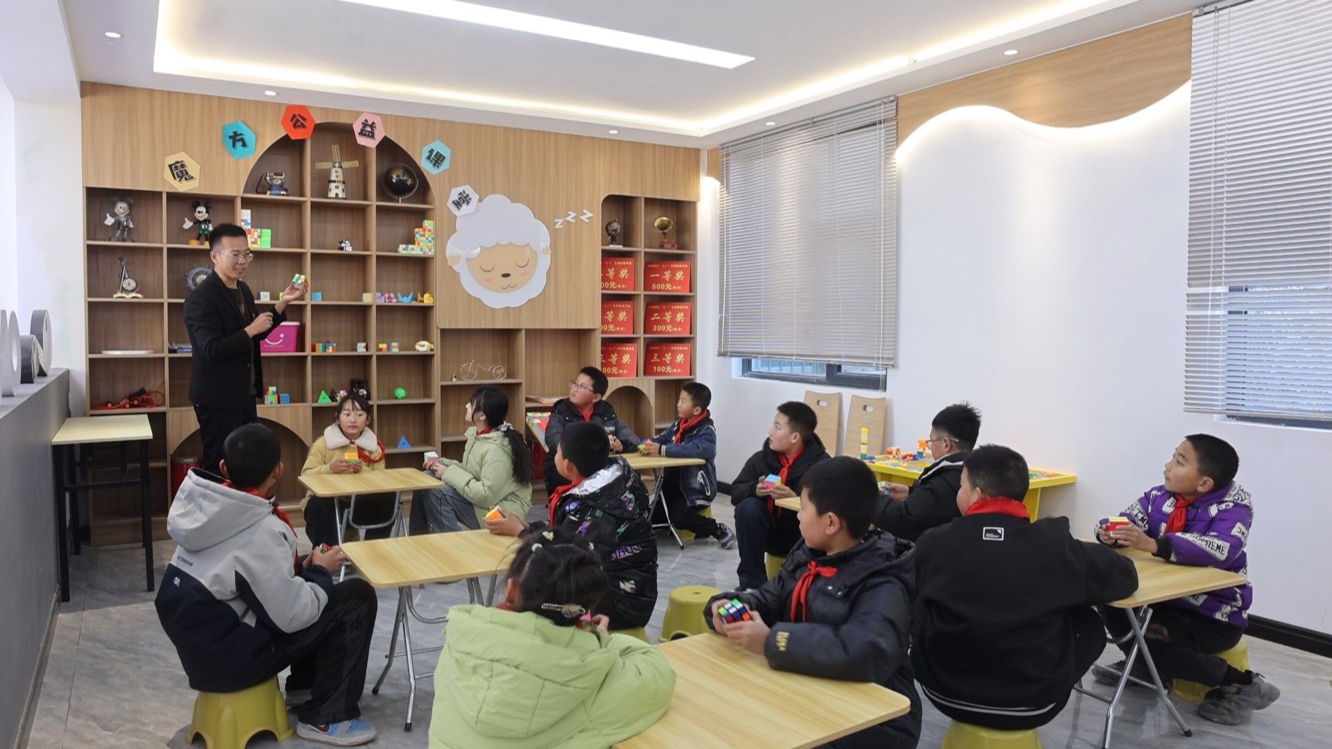 走進(jìn)元城社區(qū),圖書角書香四溢、文化角活動豐富、還有備受孩子們喜愛的魔方大課堂,各類功能區(qū)域一應(yīng)俱全。社區(qū)干部、專職工作者與黨員并肩發(fā)力,持續(xù)增強(qiáng)黨組織的凝聚力和戰(zhàn)斗力?!耙焕弦恍 ?是社區(qū)服務(wù)的重點(diǎn)。在魔方大課堂上,孩子們盡情享受益智樂趣。