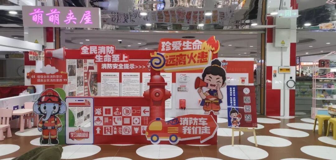 在商場6樓中庭,以紅色為主色調(diào)的宣傳點格外醒目,左側(cè)的拍照打卡區(qū)里,戴著消防頭盔的“隴小墩”卡通立牌憨態(tài)可掬,旁邊的“消防車我們走”造型裝置成了小朋友們的“心頭好”,不少家庭舉著消防主題手牌定格趣味瞬間;在警示案例區(qū),展板上展示著近年典型火災事故的圖文資料,觸目驚心的場景讓過往市民駐足深思;旁邊的消防安全知識區(qū)干貨滿滿;最右側(cè)的消防產(chǎn)品展示區(qū)里,各類器材整齊陳列,消防員現(xiàn)場演示使用方法,手把手教市民辨別合格消防產(chǎn)品。